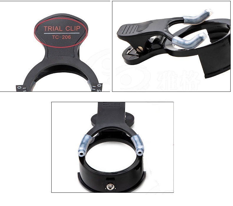 Пробные оправы в виде клипсы. Данные насадки удобны и не имеют сложностей в использовании. Они прочно фиксируется на обычных очках и поднимаются с них одним движением руки.