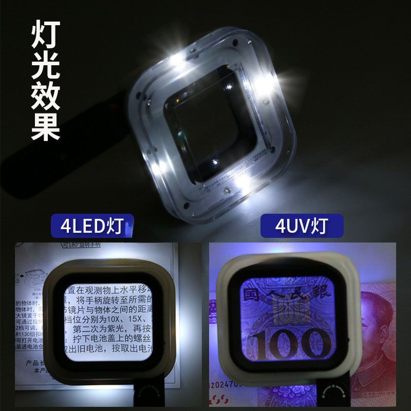 Лупа складная с универсальной подсветкой 8016-XX, размеры: 52*45 мм, увеличение: 10X, 15X, 20X