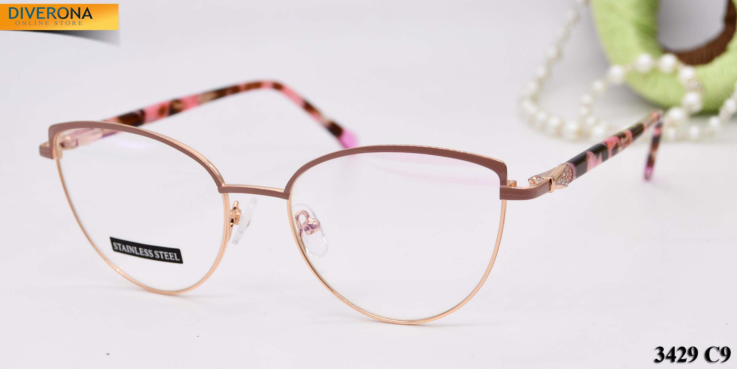 Metal frames for glasses. The material is stainless steel. The frames keep their shape well, at the same time they are flexible. High quality. Frames have good tactile properties and resistant to damage, they are lightweight and hypoallergenic. Many of models are decorated with rhinestones, have elegant temples and flex hinges. Fashionable design. This frames collection of high quality, passes piece control. In our store goods of this category have a low price for wholesale. European Conformity.