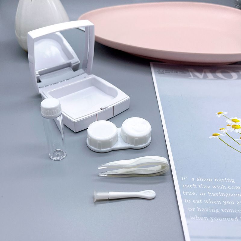 - Комплект: 2 контейнера для линз, пинцет, палочка для чистки линз, зеркало, флакончик для раствора