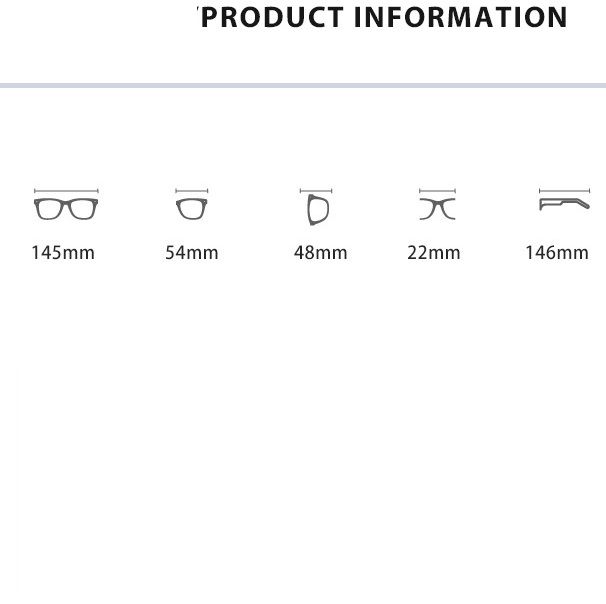 - Размер: общая ширина -145 мм, ширина линзы - 54 мм, высота линзы - 48 мм, мост - 22 мм, длина заушника - 146 мм