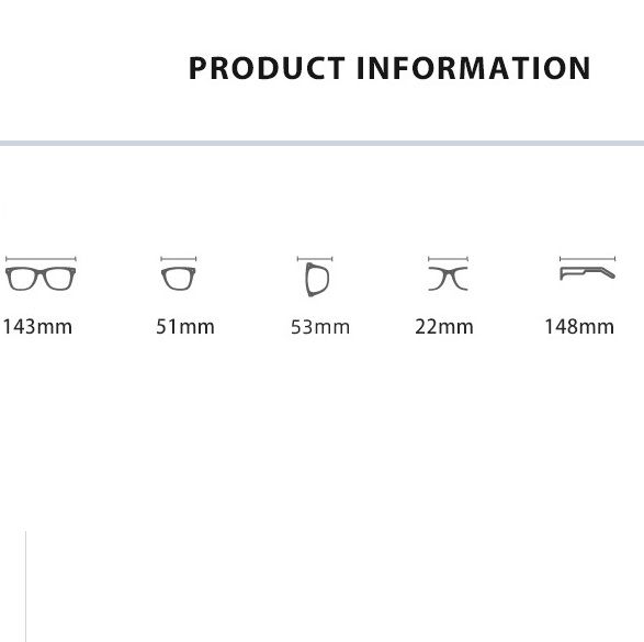 - Размер: общая ширина -143 мм, ширина линзы - 51 мм, высота линзы - 53 мм, мост - 22 мм, длина заушника - 148 мм