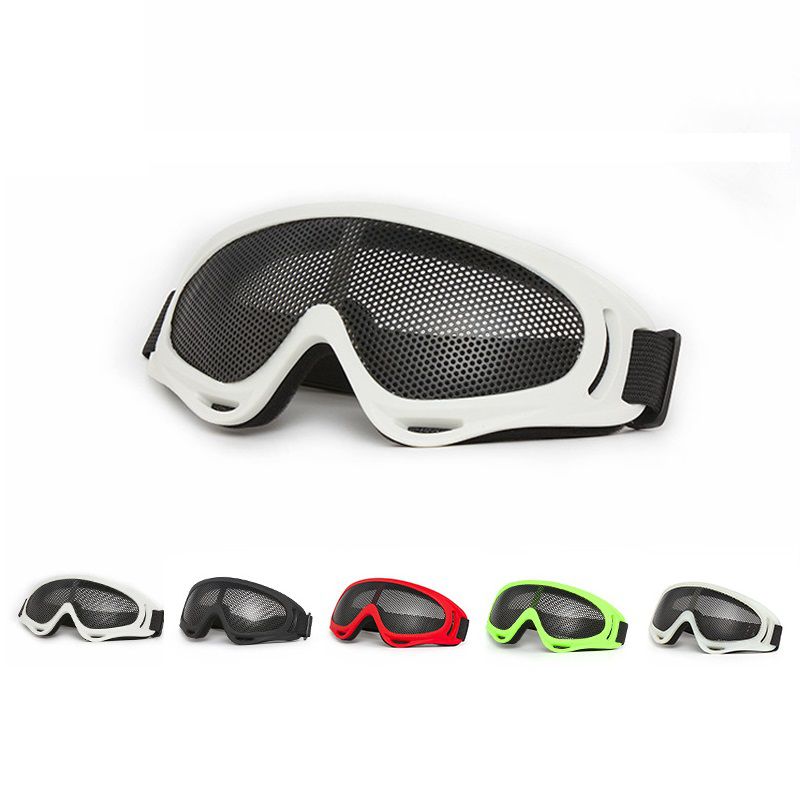 Особенности: 1. Изготовлены из высококачественного полиэстера и металлического материала, обладают высокой ударопрочностью, безопасны и надежны. 2. Металлическая сетка на очках предотвращает попадание частиц песка размером более 0.2-0.3 мм и надежно защищает глаза. 3. Ремни можно регулировать по размеру головы.