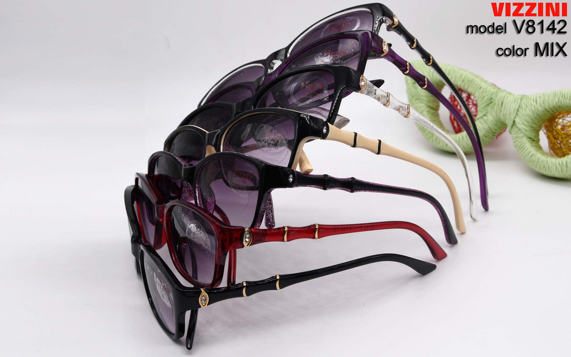 Очки в пластиковой оправе VIZZINI V8142 диоптрии -1,00 до -8,00 (шаг 0,5) с цветными линзами,стразы