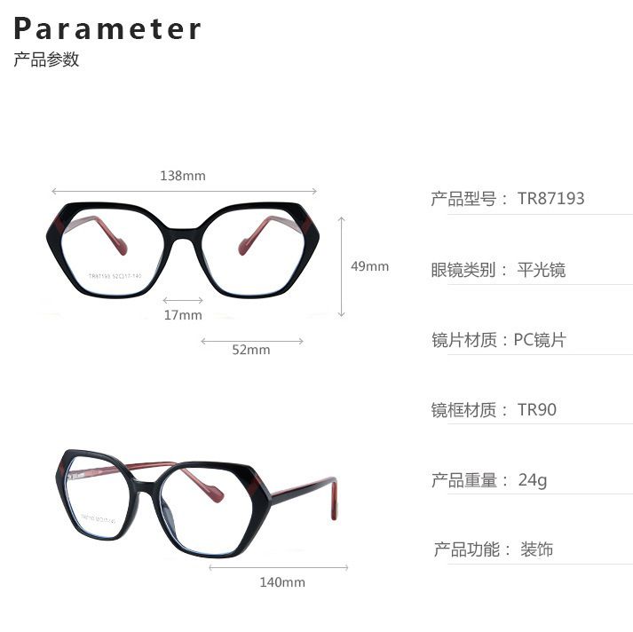 - Материал рамки: пластик TR90