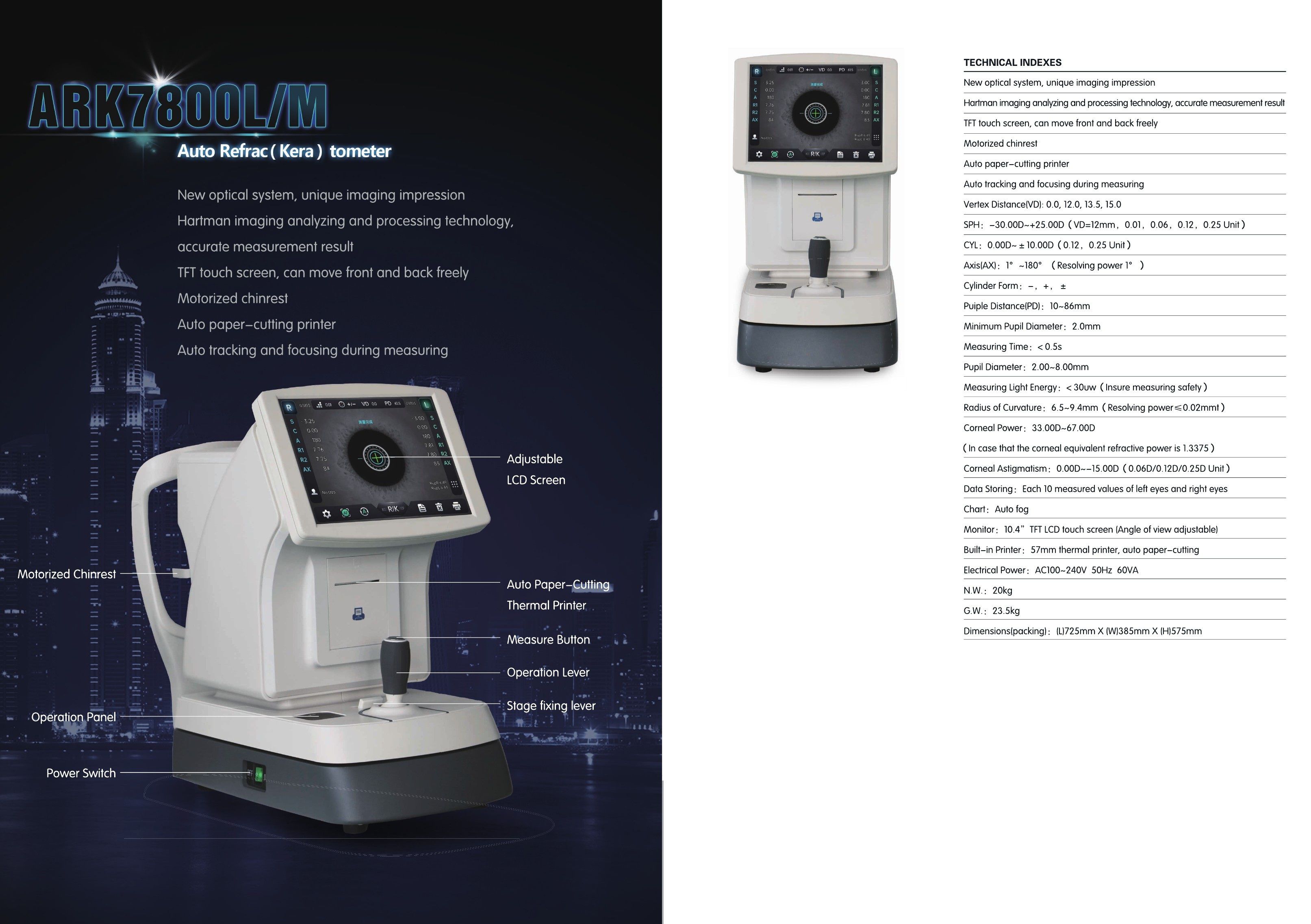 - ARK7800L: Авторефракторный кератометр с автоматическим отслеживанием