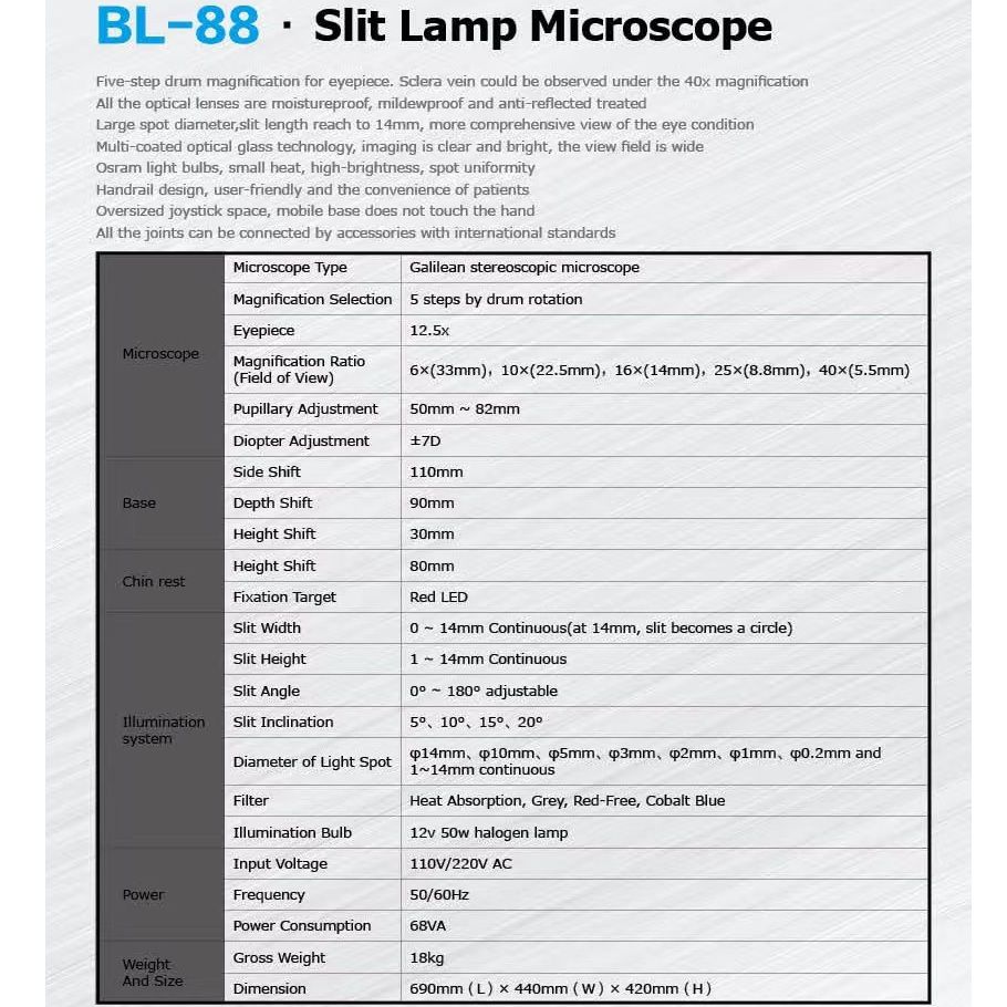 Digital slit lamp microscope Bolan BL-88, table top and lamp included
