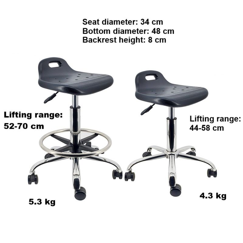 Подъемный механизм позволяет удобно регулировать высоту сиденья под индивидуальные потребности, а колесики обеспечивают легкость перемещения. Дизайн стула ориентирован на максимальную функциональность, долговечность и простоту ухода, что делает его незаменимым решением для рабочих зон, требующих повышенного уровня гигиены и надежности.
