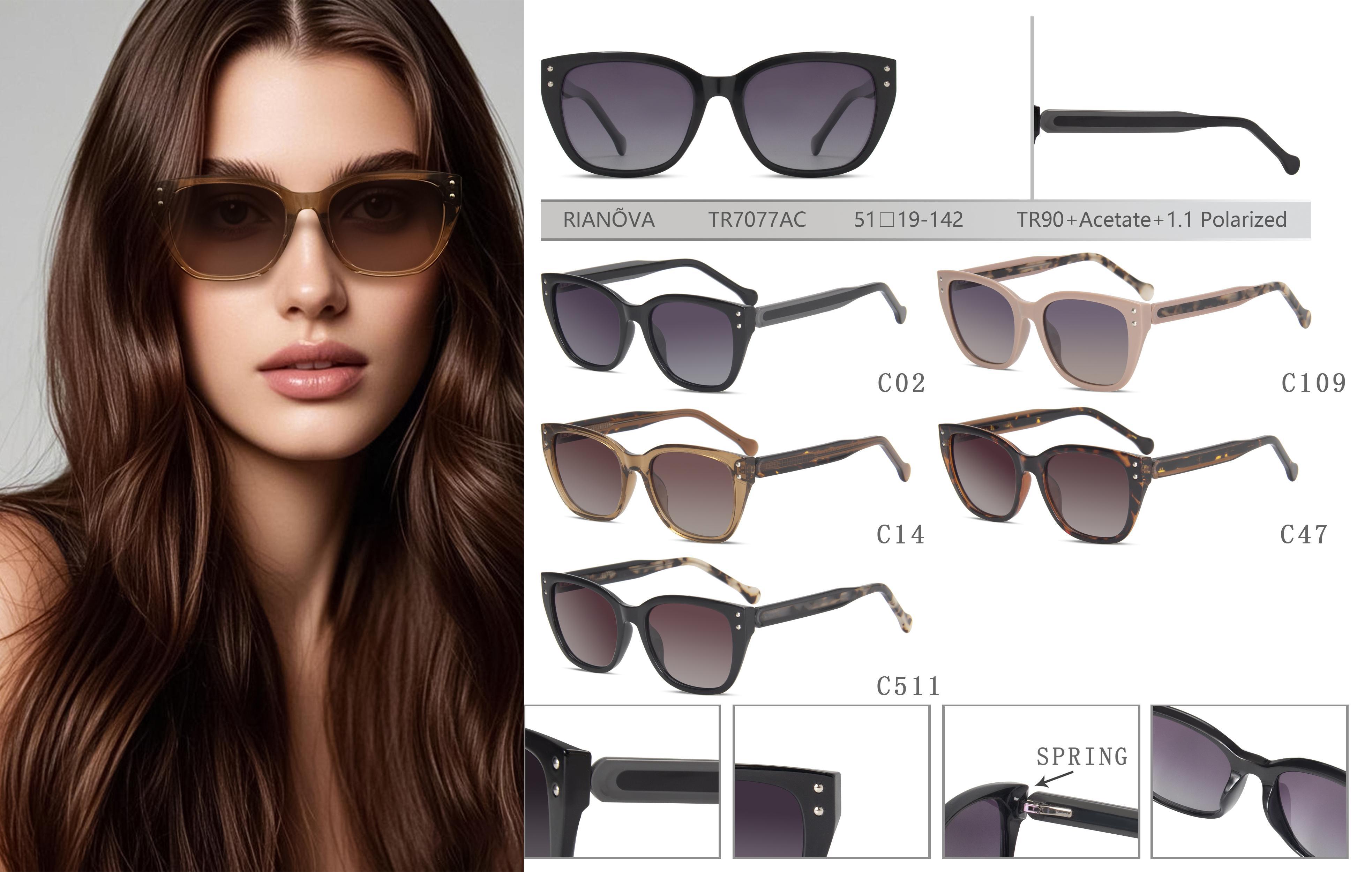 Polarized TR90+acetate plastic sunglasses with spring hinges Rianova TR7077AC