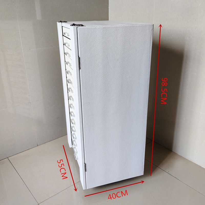 - Размер: общий - 55 * 40 * 98.5 см. Для 216 мест: размер одного ящика - 51 * 37 * 5.5 см, размер ячейки - 16 * 5.5 * 5.5 см. Для 288 мест: размер одного ящика - 51 * 37 * 4.5 см, размер ячейки - 16 * 5.5 * 4.5 см.