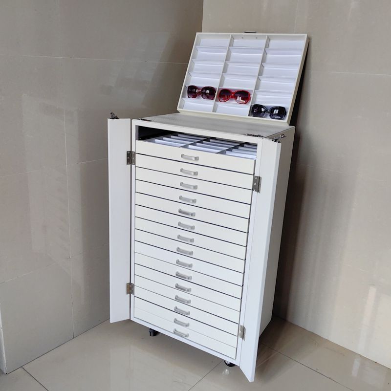 - Вместимость: 288 места (16 ящиков по 18 ячеек, для оправ) / 216 мест (12 ящиков по 18 ячеек, для солнцезащитных очков)