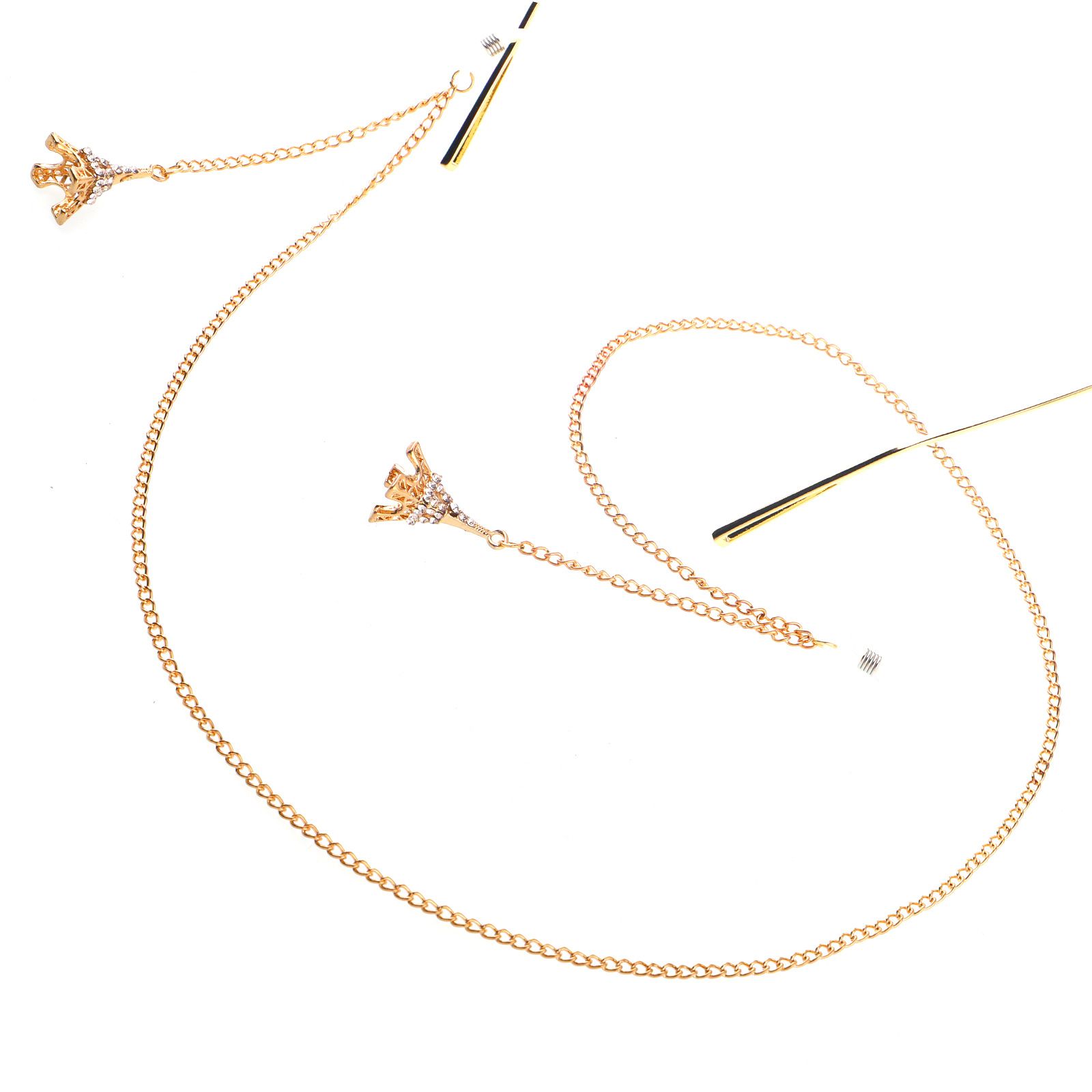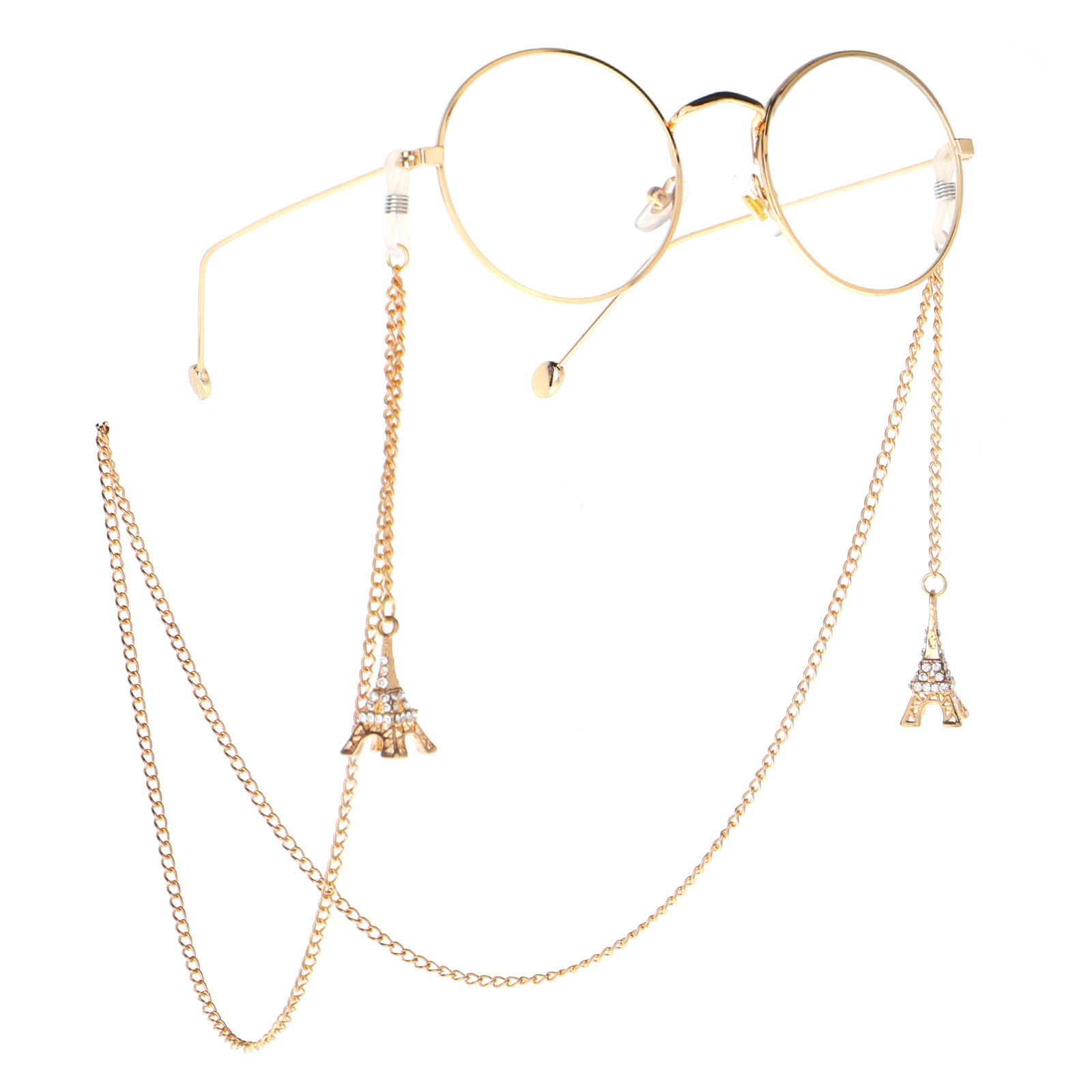Металлическая нескользящая цепочка, золотого цвета, с подвеской эйфелева башня со стразами, для очков и масок GL007