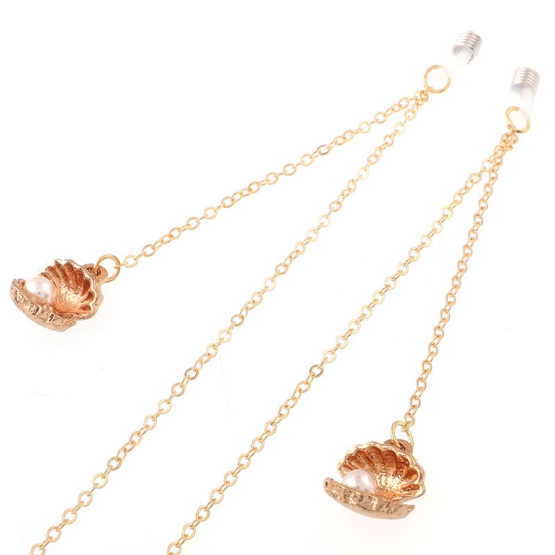 Металлическая нескользящая цепочка золотого цвета, с ракушкой и жемчужиной, для очков и масок GL017