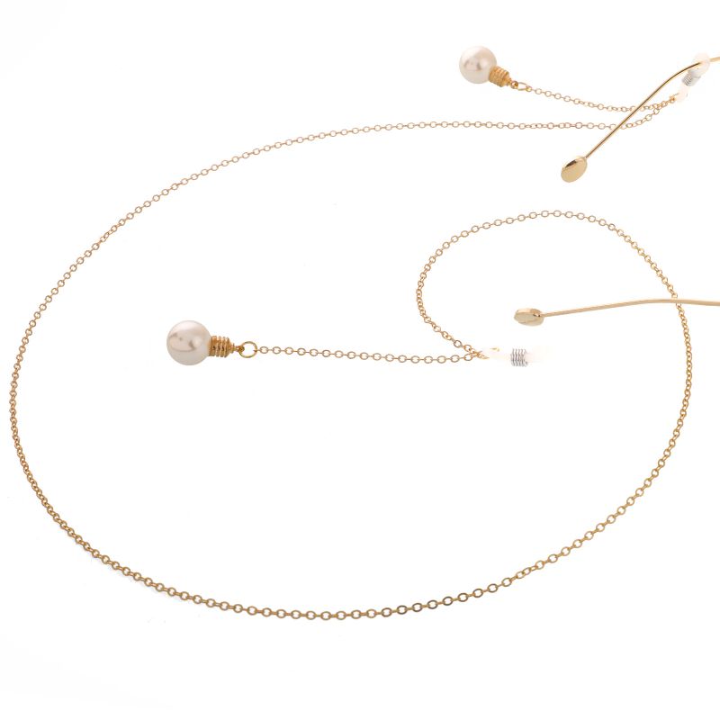 Металлическая нескользящая цепочка золотого цвета, с жемчужной подвеской в виде лампочки, для очков и масок GL043