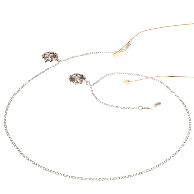 Металлическая нескользящая цепочка серебряного цвета, с птичьим гнездом и жемчугом, для очков и масок GL056