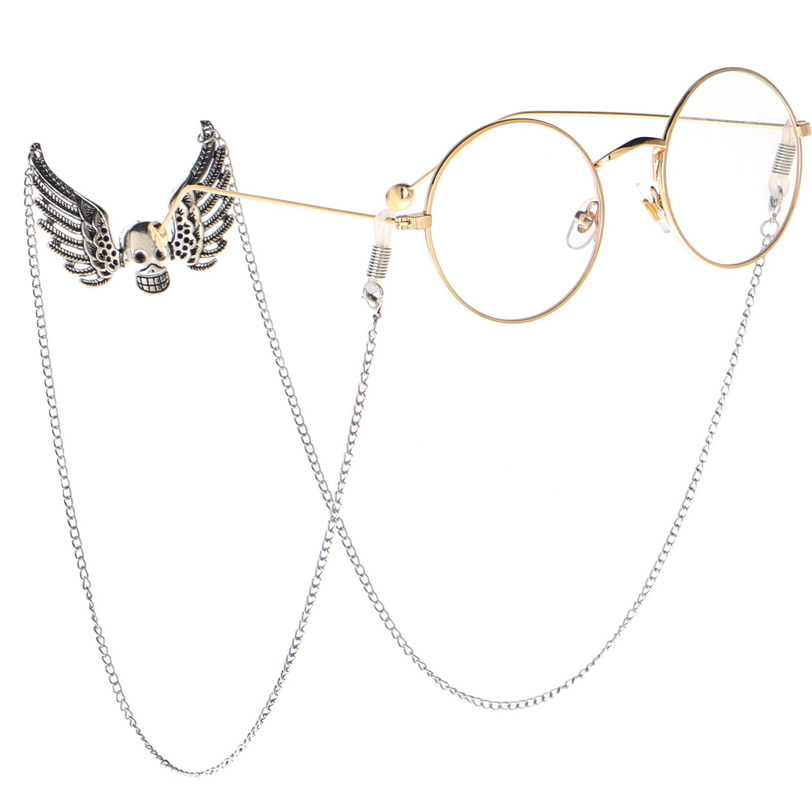 Металлическая нескользящая цепочка серебряного цвета, с панк-черепом ангела, для очков и масок GL067