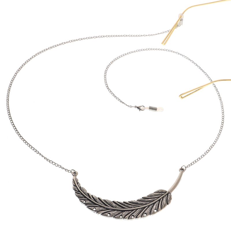 Металлическая нескользящая цепочка серебряного цвета, с пером, для очков и масок GL070