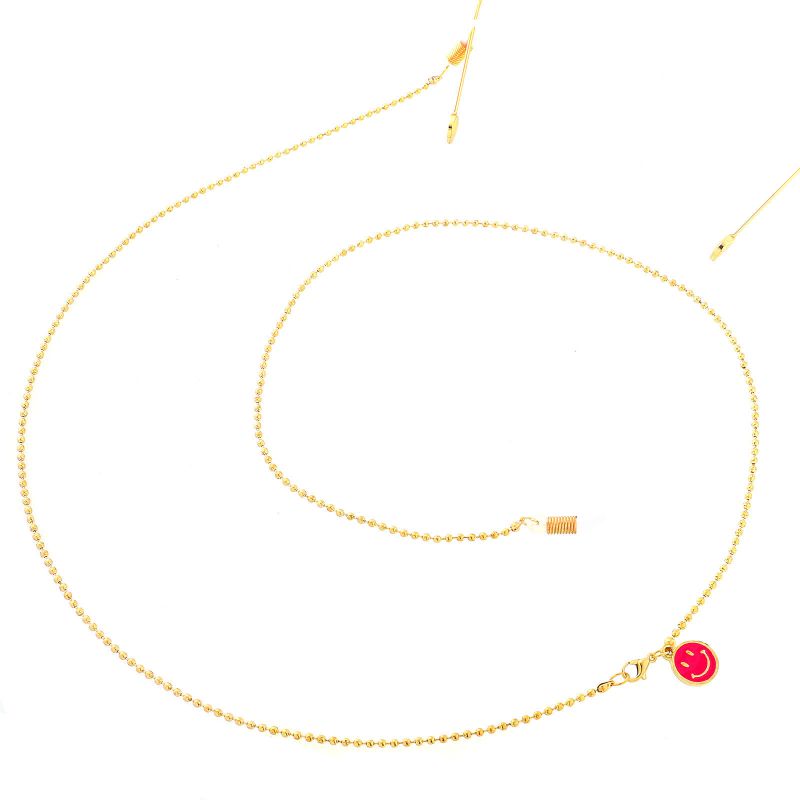 Металлическая нескользящая цепочка, с красным смайликом, для очков и масок GL073-2