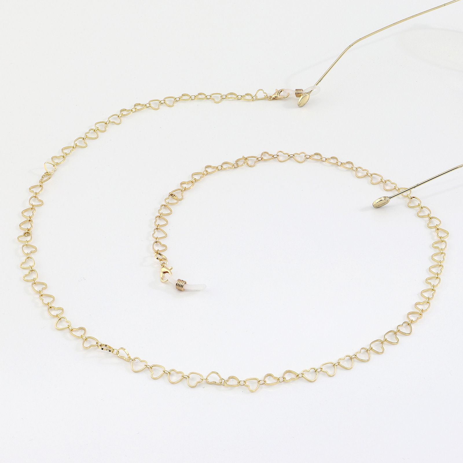 Металлическая нескользящая цепочка золотая, с медным полым сердцем, для очков и масок GL1000