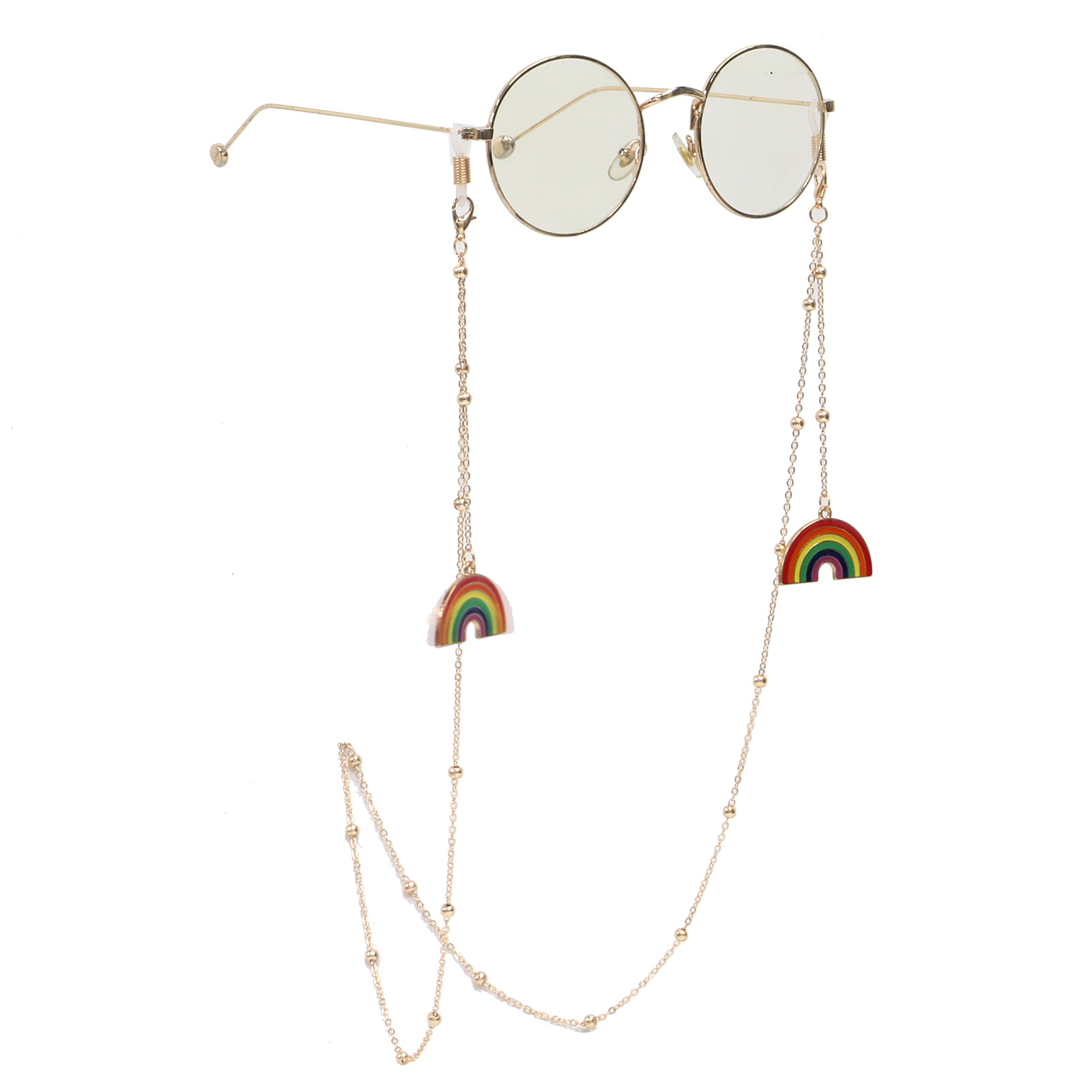 Металлическая цепочка для очков с бусинами и кулоном радуга GL1104