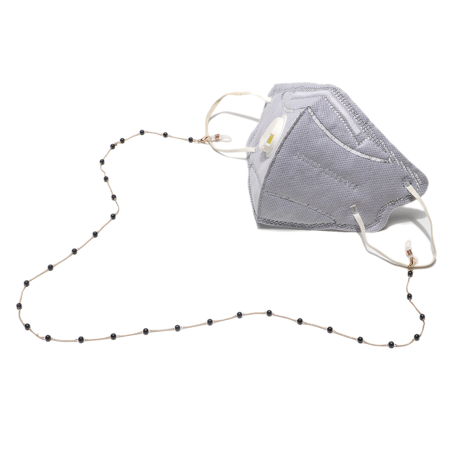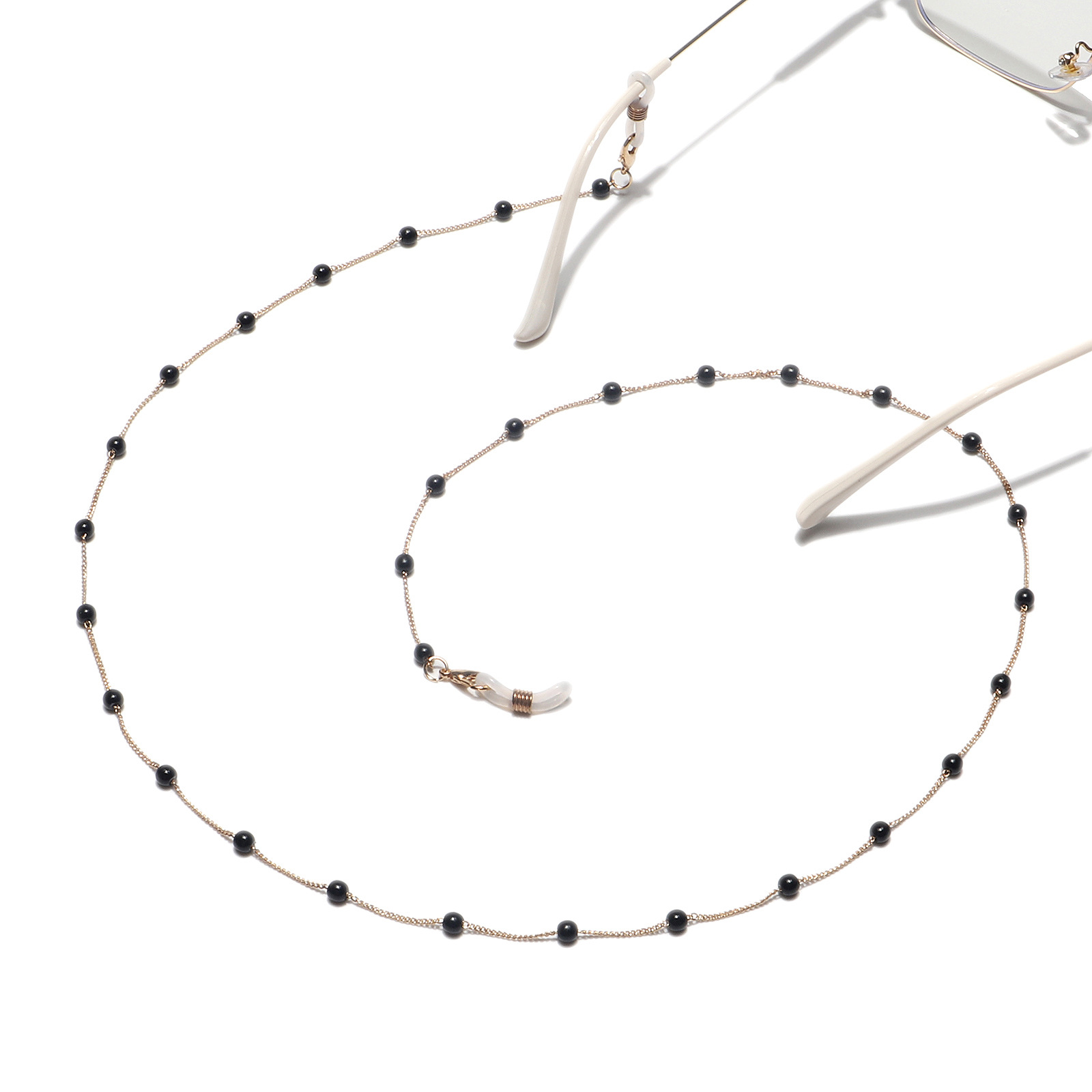 Металлическая цепочка с чёрным искусственным жемчугом для очков и масок GL1126