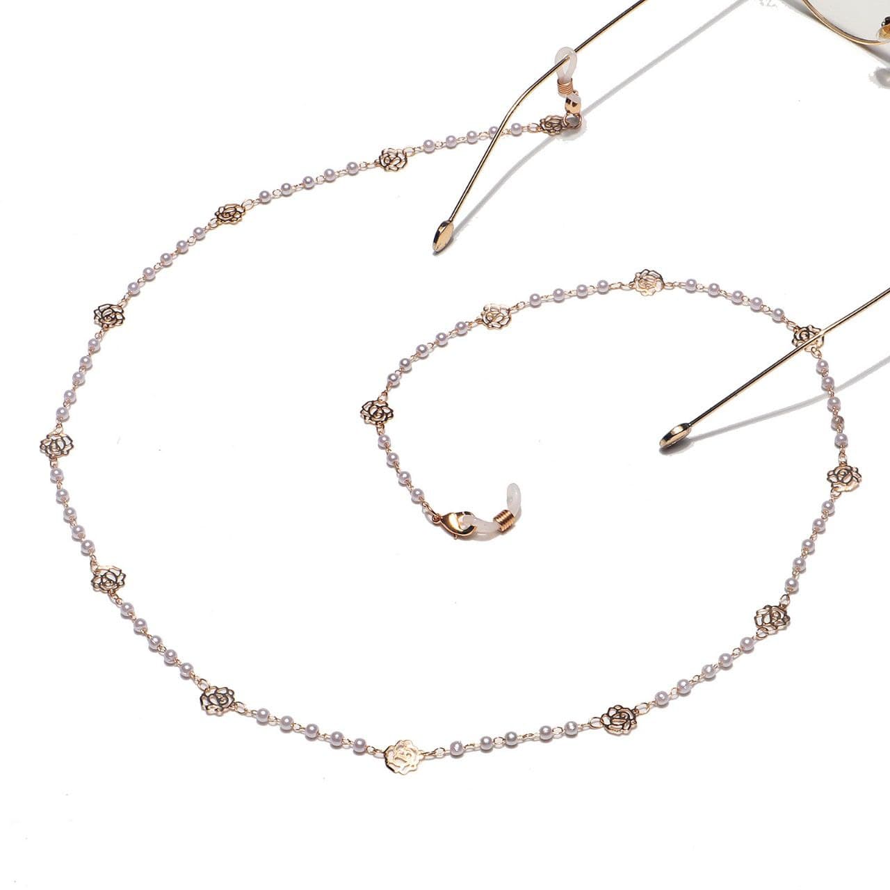 Модная цепочка для очков с жемчугом и полыми розами GL1225