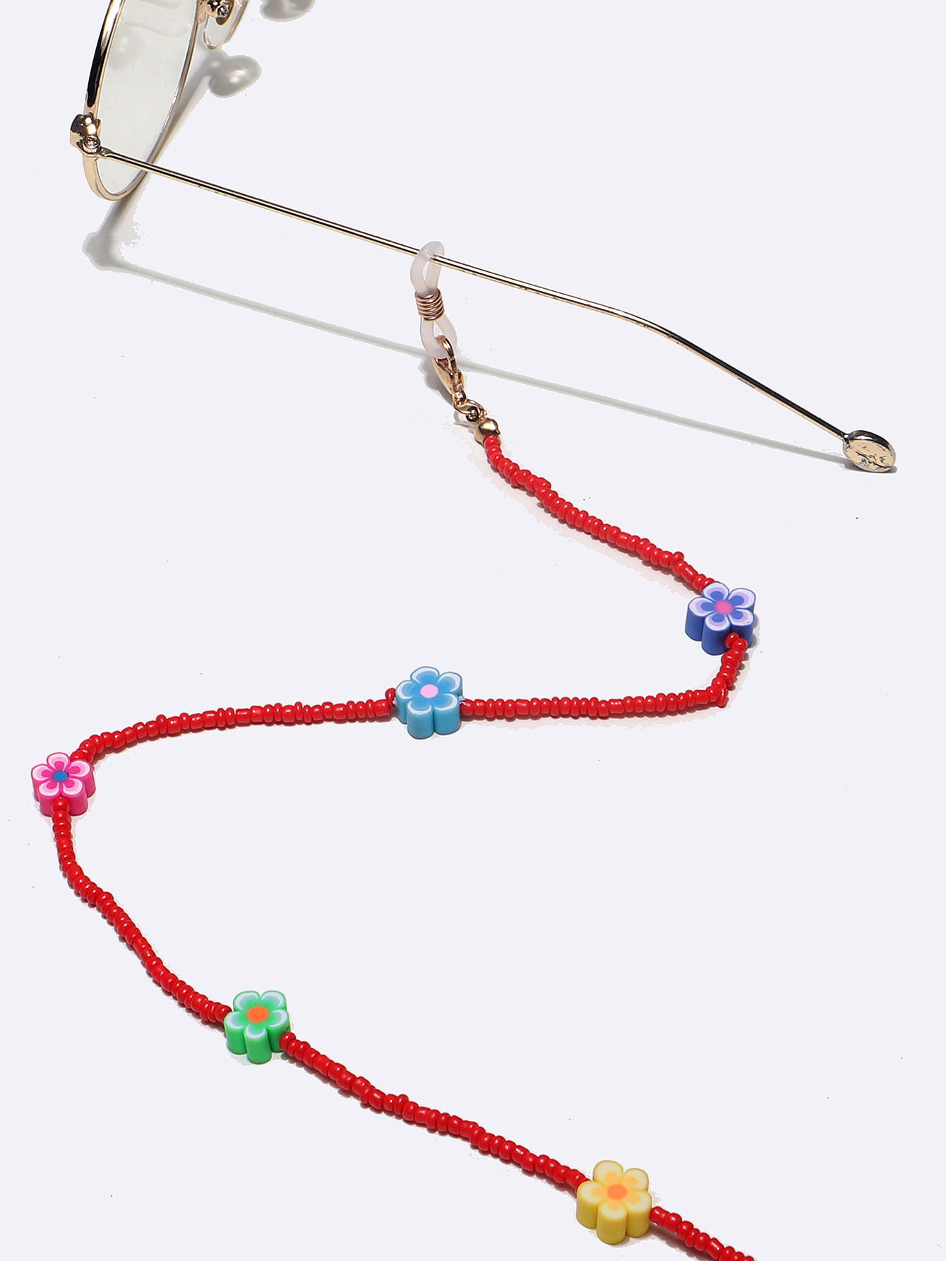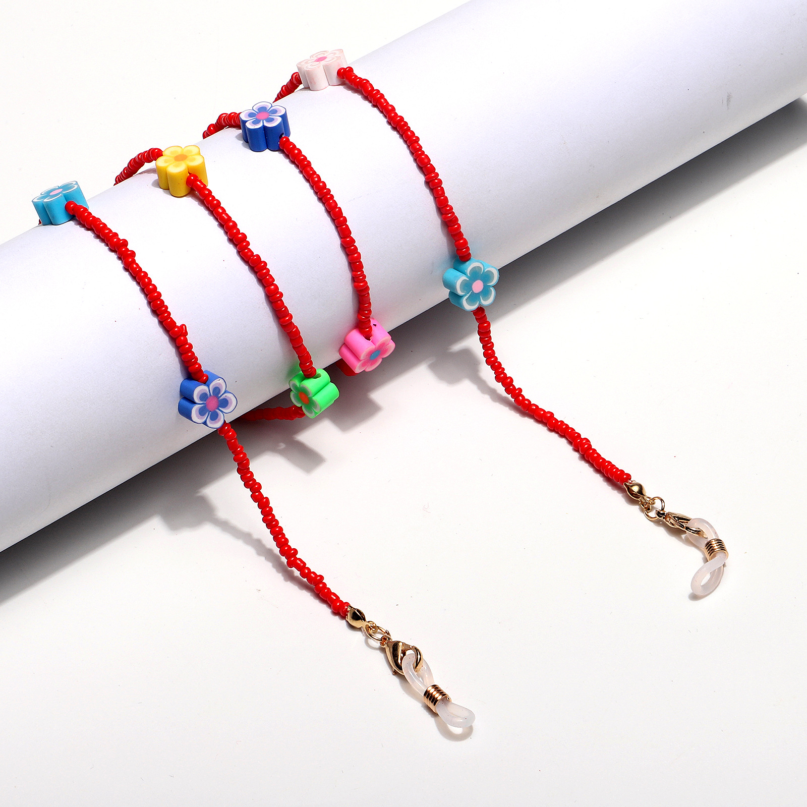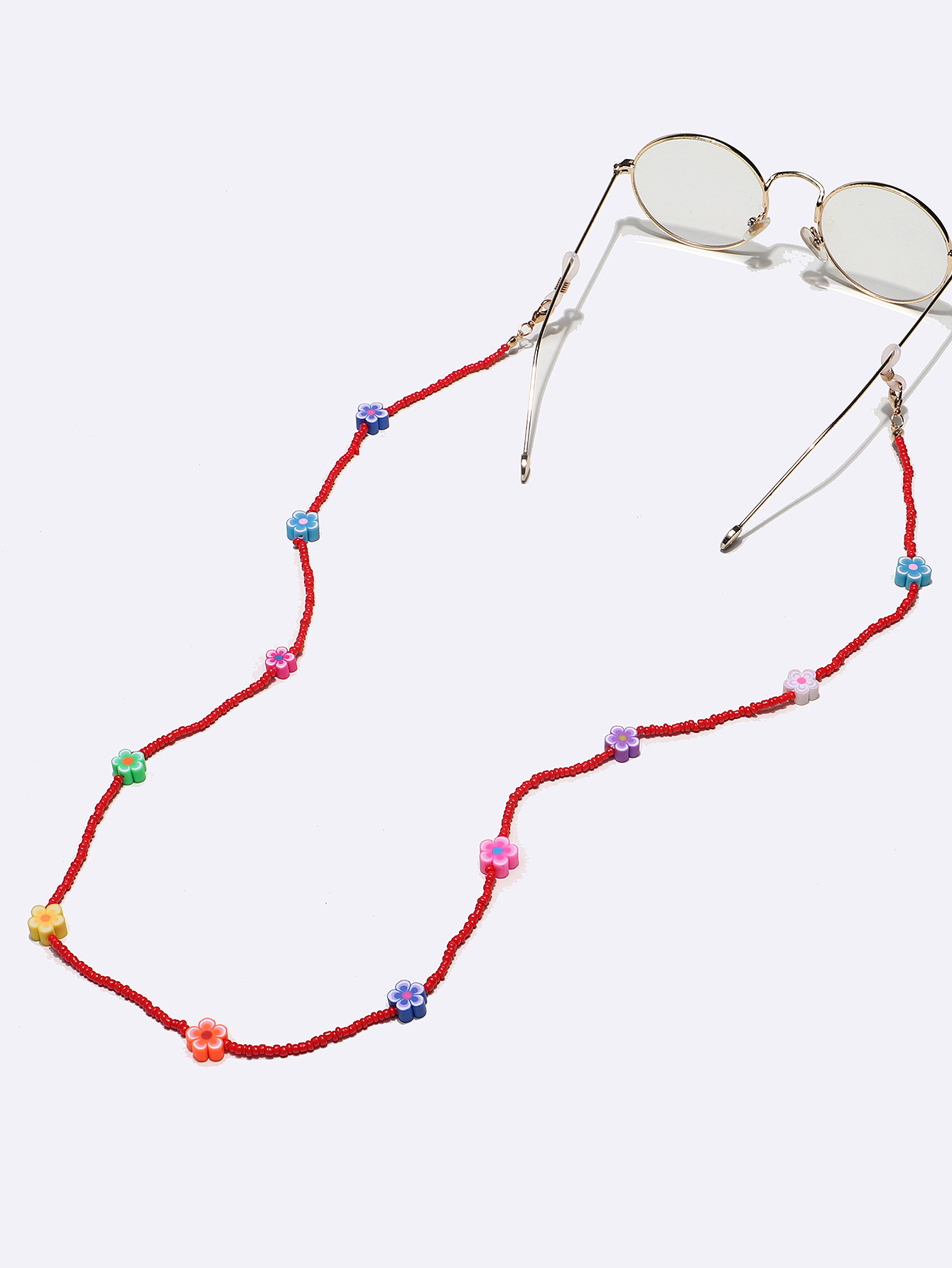 Цепочка для очков из красных рисовых бусин с цветами GL1289