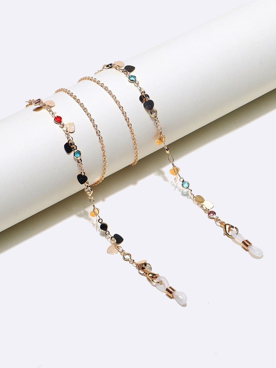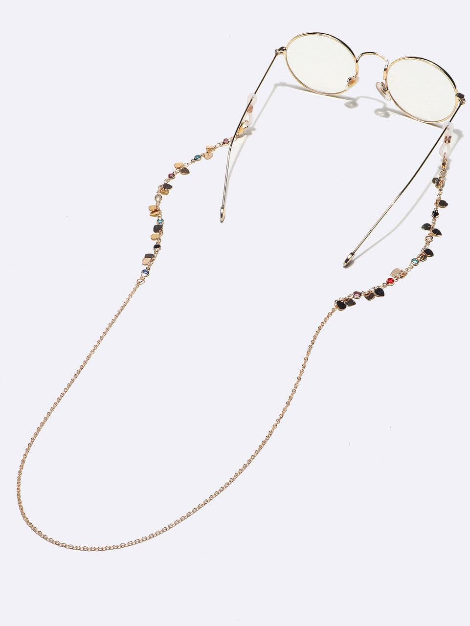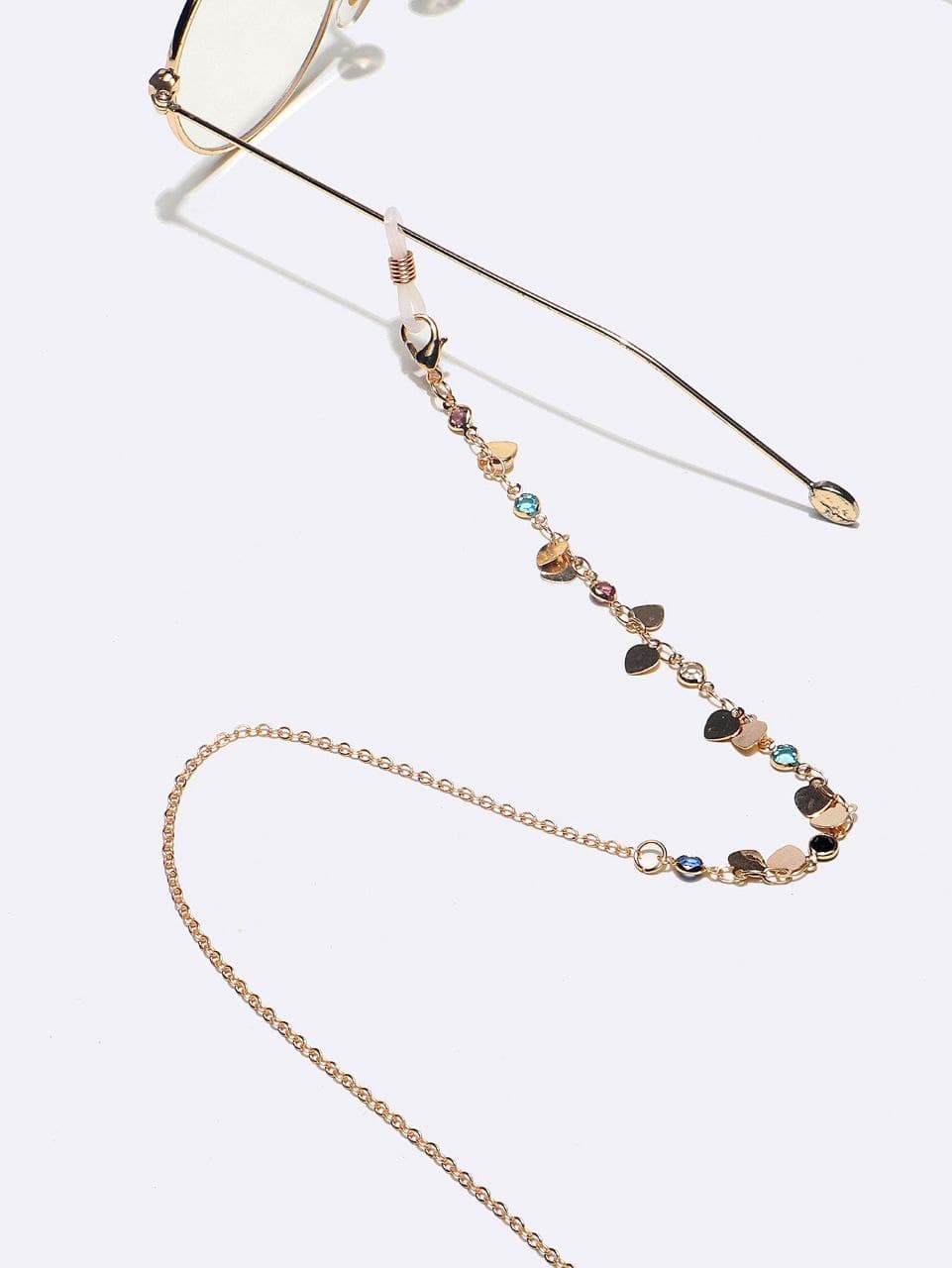 Золотая цепочка для очков с сердечками из цветных кристаллов GL1311