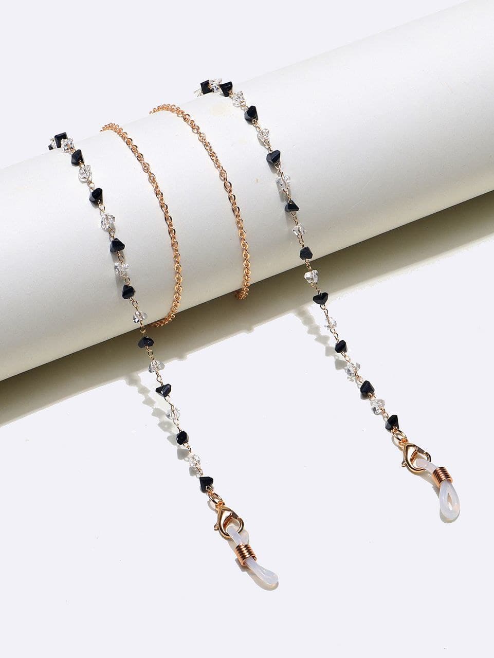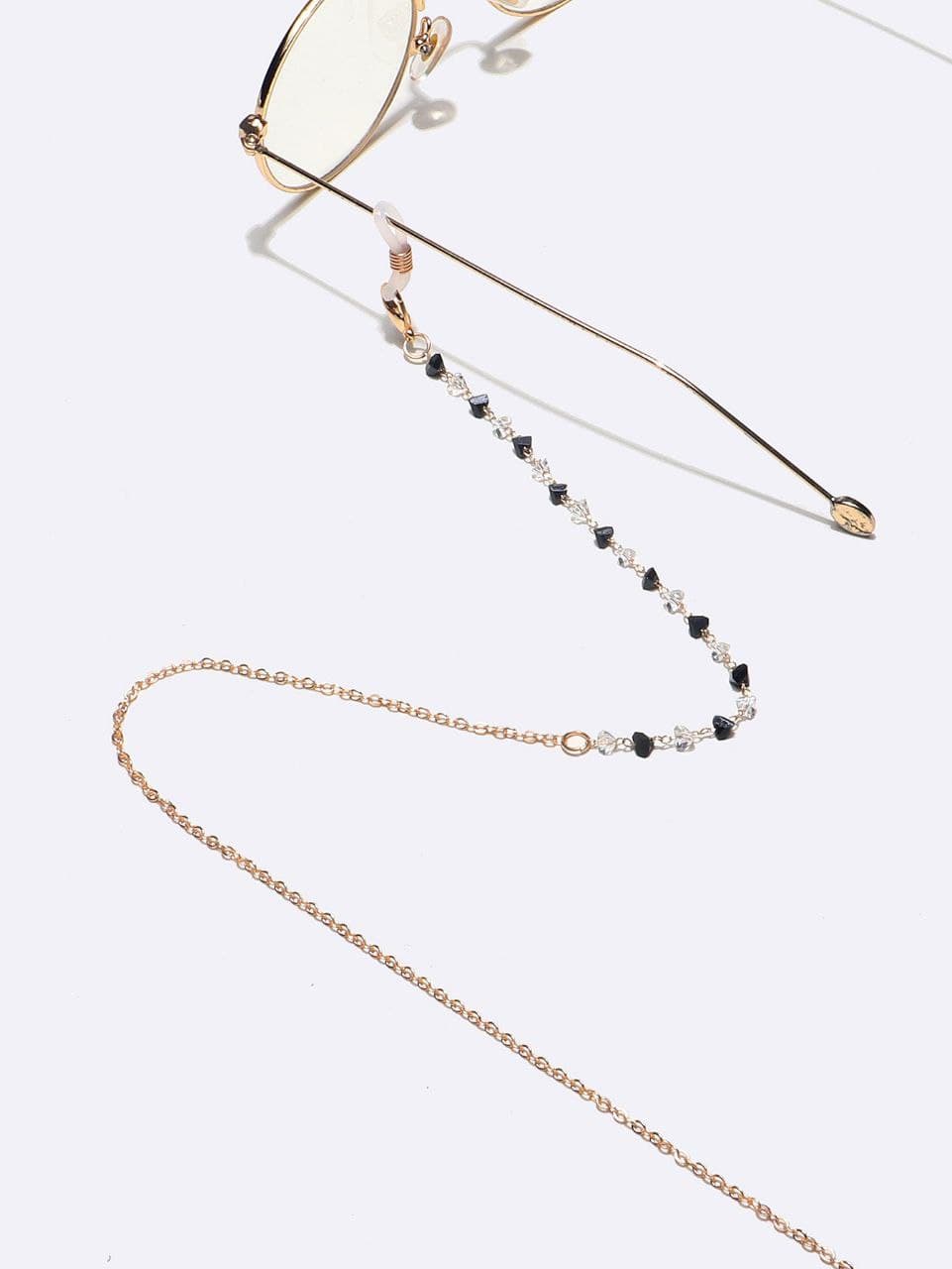 Золотая цепочка для очков с черными и белыми кристаллами GL1312