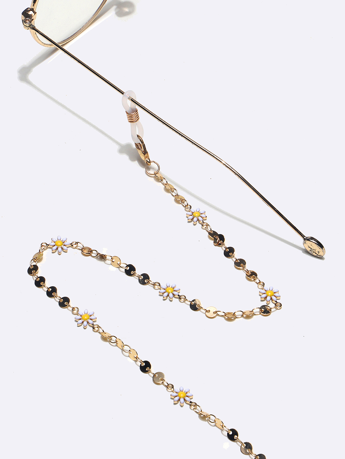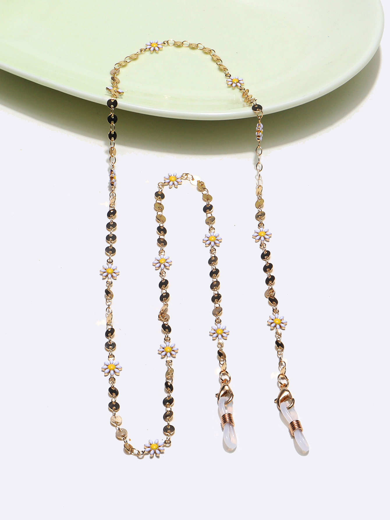 Металлическая цепочка для очков с белыми ромашками и дисками GL1359