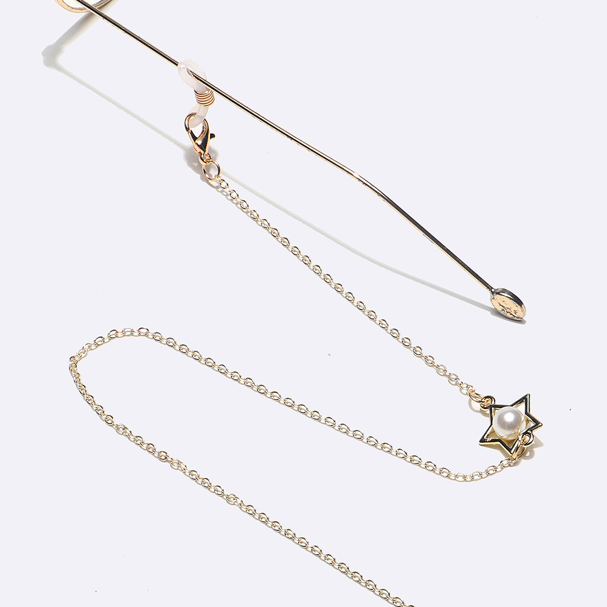 Золотая цепочка для очков с жемчугом в полых звездах GL1377