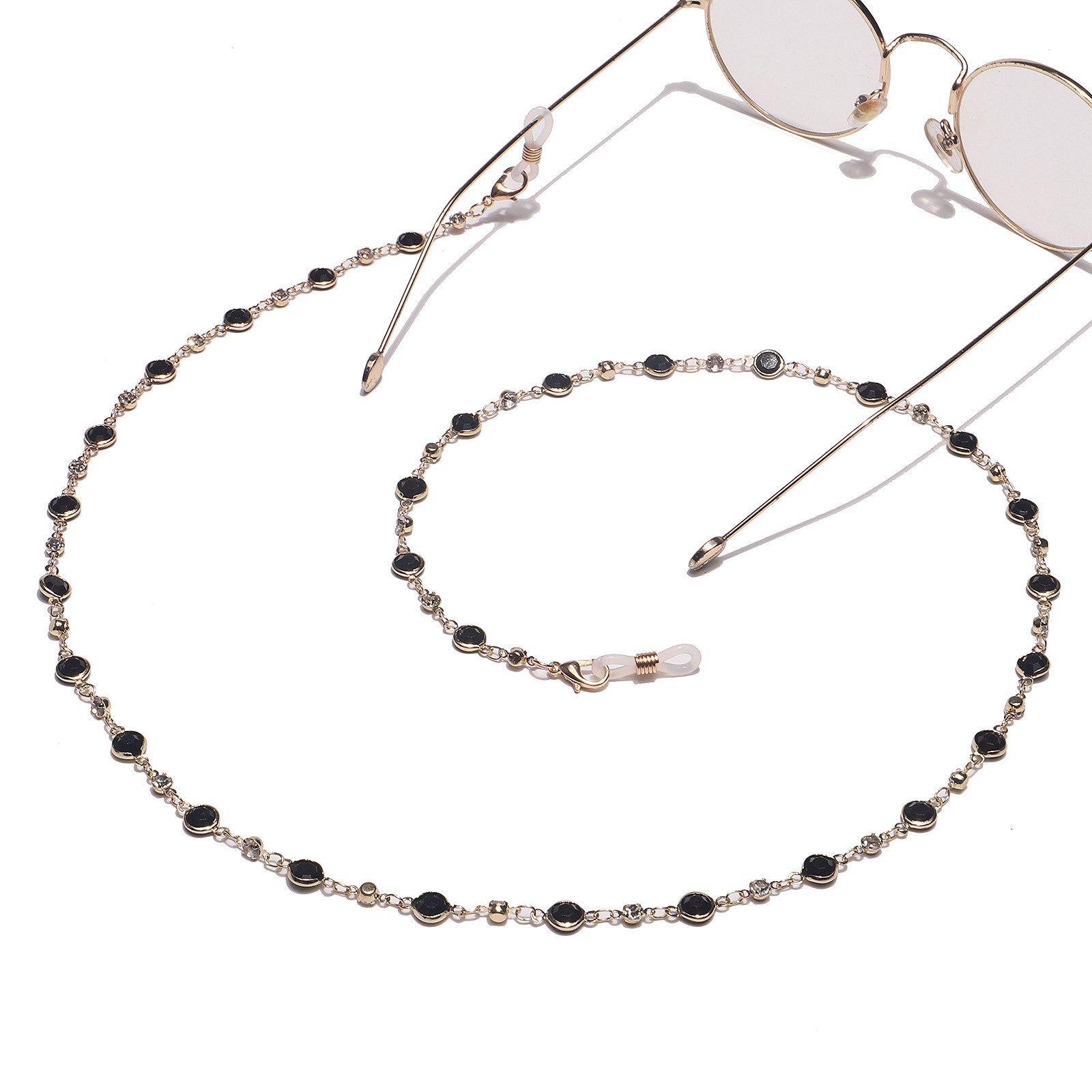 Модная золотая цепочка для очков со стразами из черного стекла GL1408
