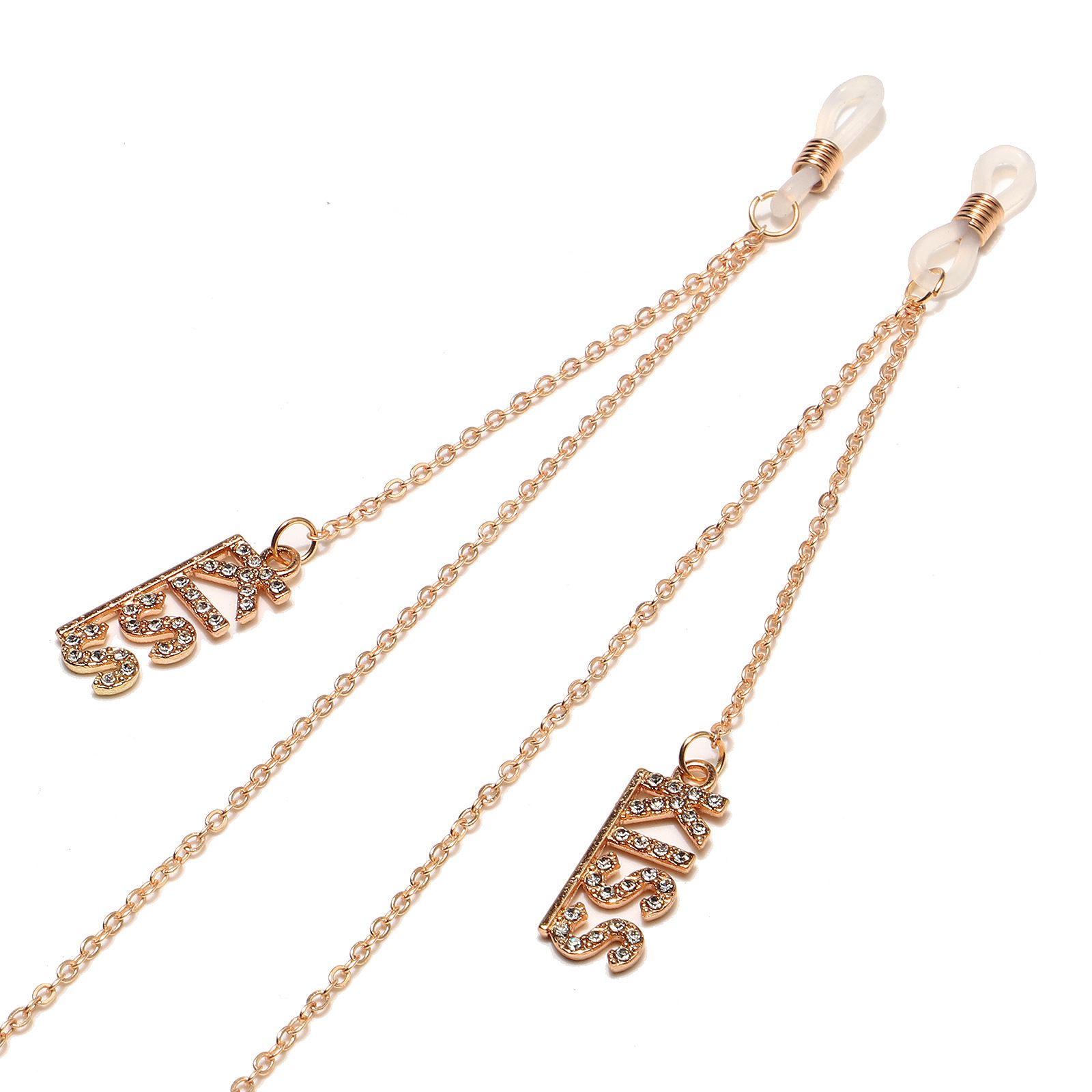 Металлическая нескользящая цепочка золотого цвета, со словом Kiss со стразами, для очков и масок GL1444
