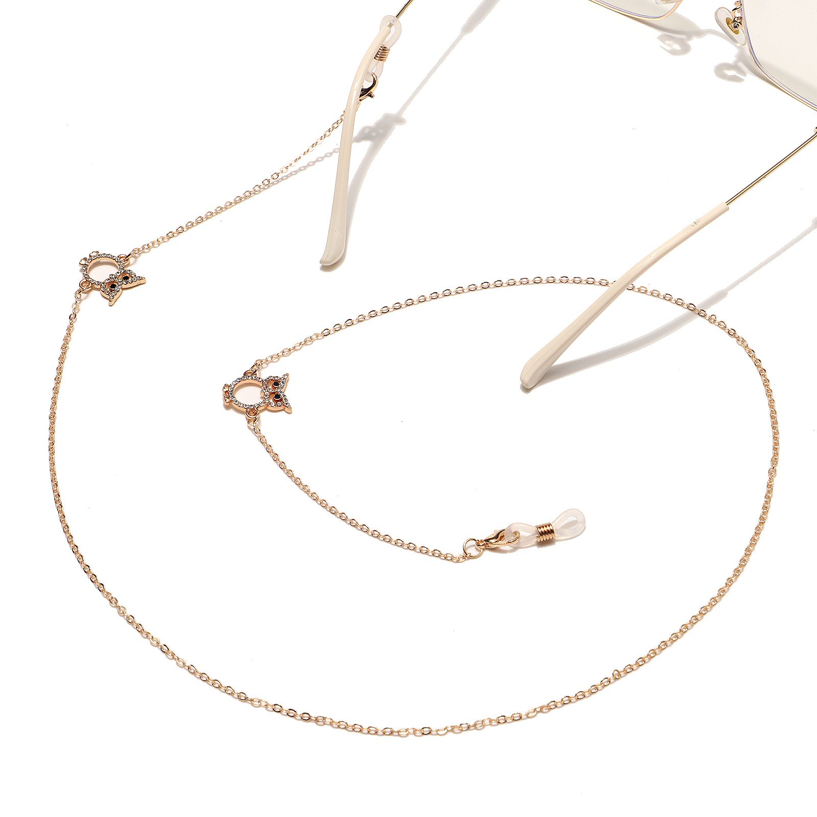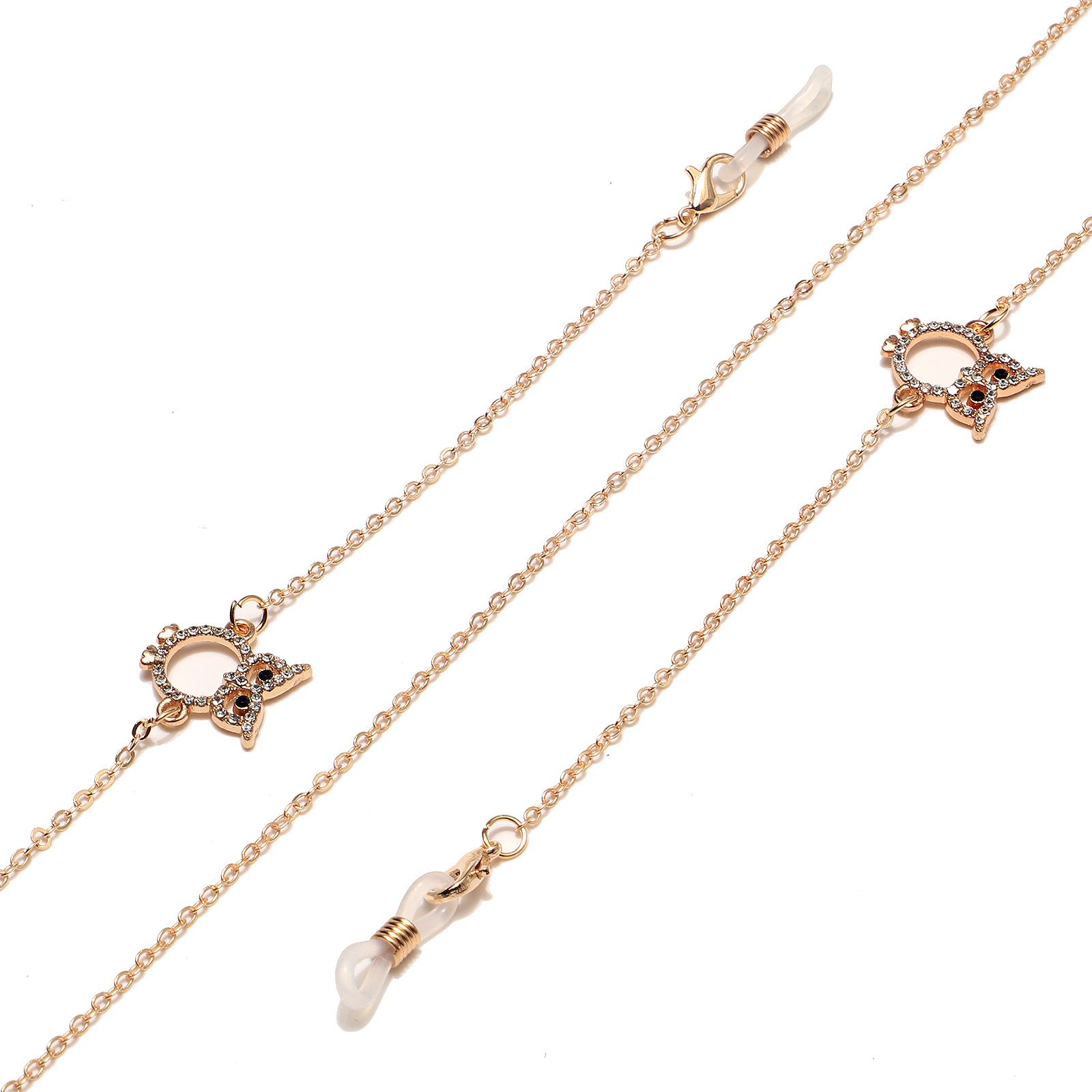 Металлическая нескользящая цепочка золотого цвета, с совой со стразами, для очков и масок GL1446