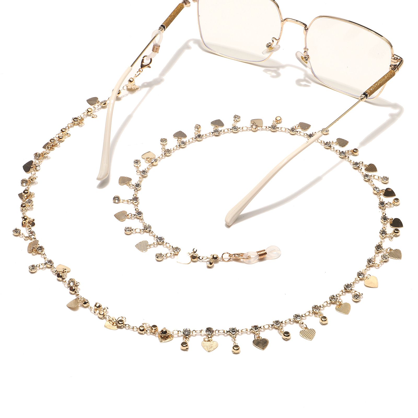 Металлическая нескользящая цепочка, с сердцем и стразами, для очков и масок GL1463