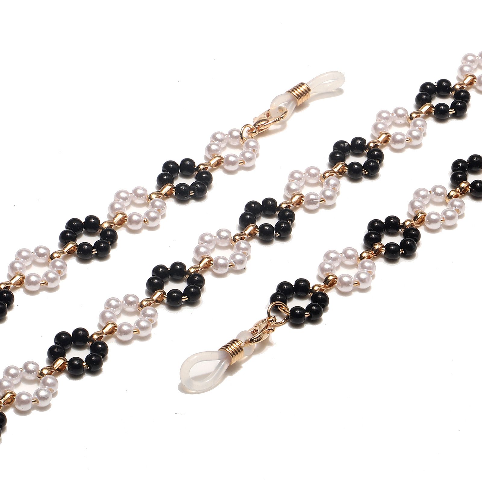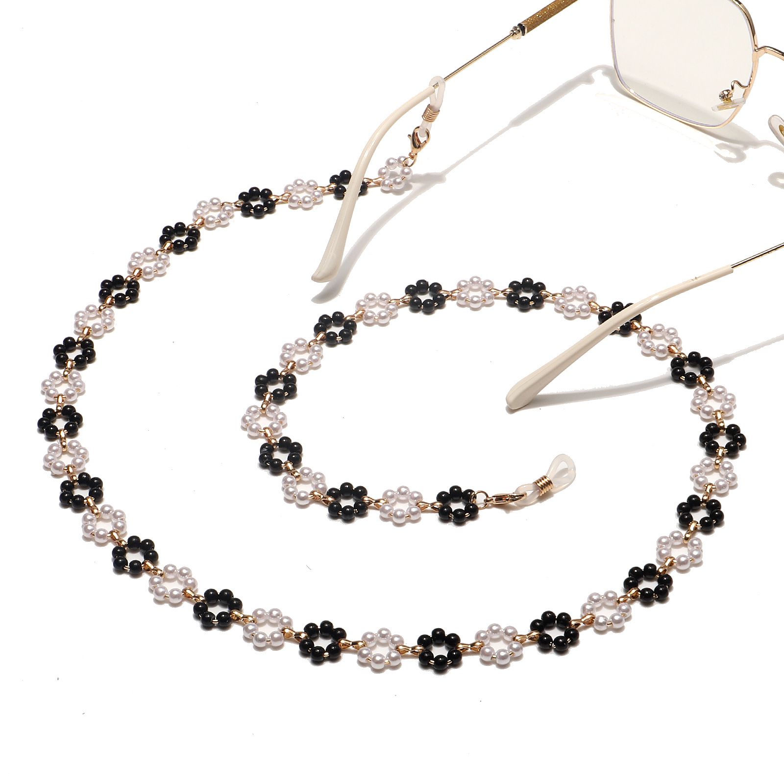 Металлическая нескользящая цепочка, с черно-белым цветком из жемчуга, для очков и масок GL1467