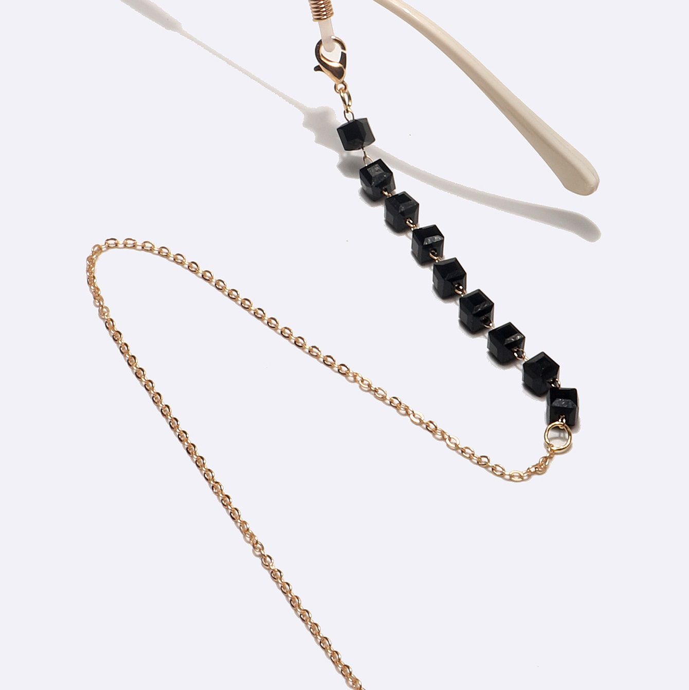 Металлическая нескользящая цепочка золотого цвета, с квадратным черным кристаллом, для очков и масок GL1480