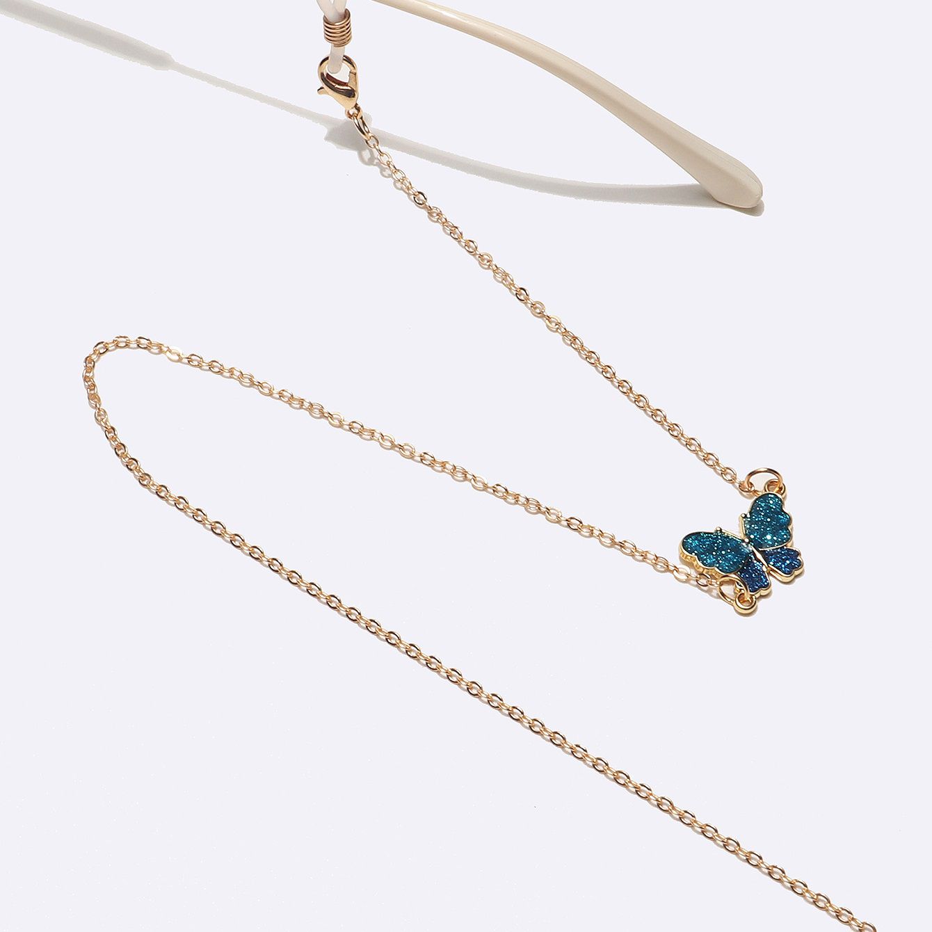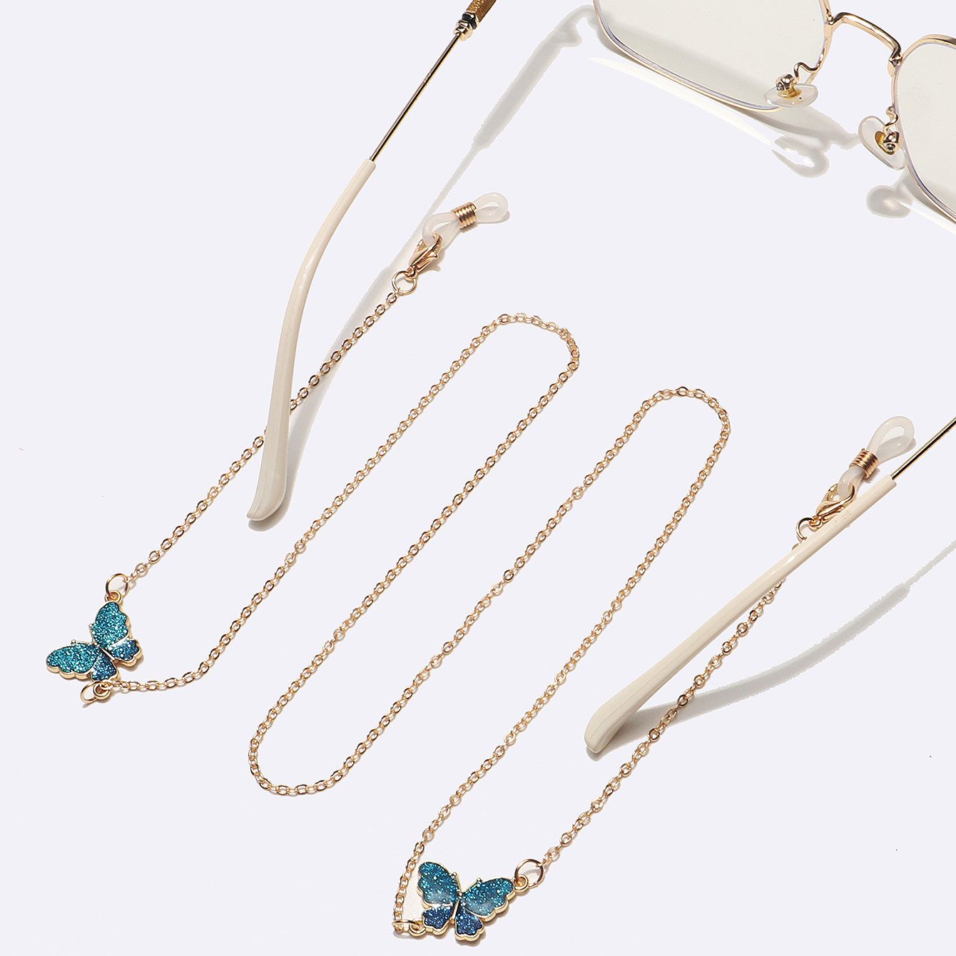 Металлическая нескользящая цепочка золотого цвета, с синей бабочкой, для очков и масок GL1498