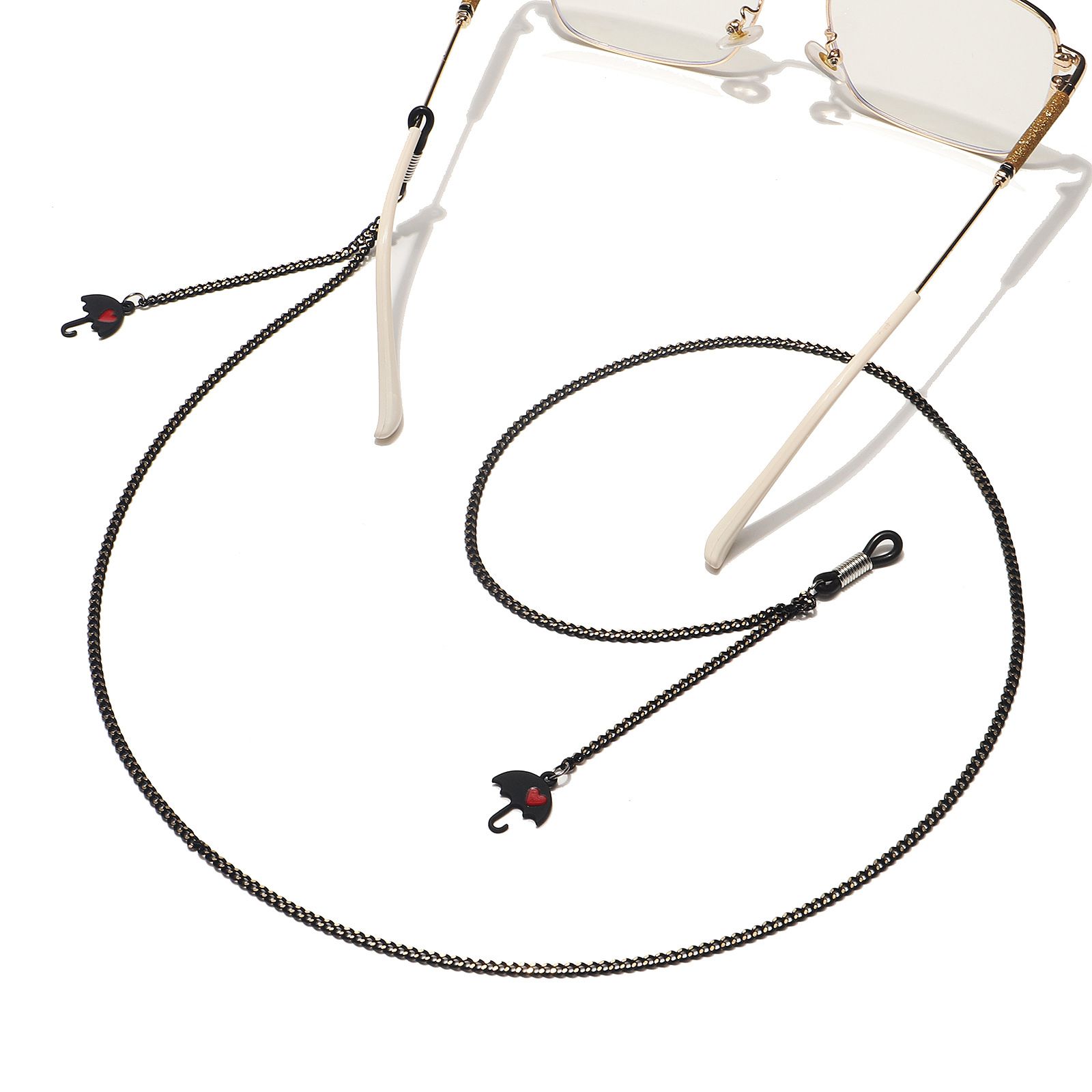 Металлическая нескользящая цепочка черного цвета, с подвеской зонтик, для очков и масок GL1514