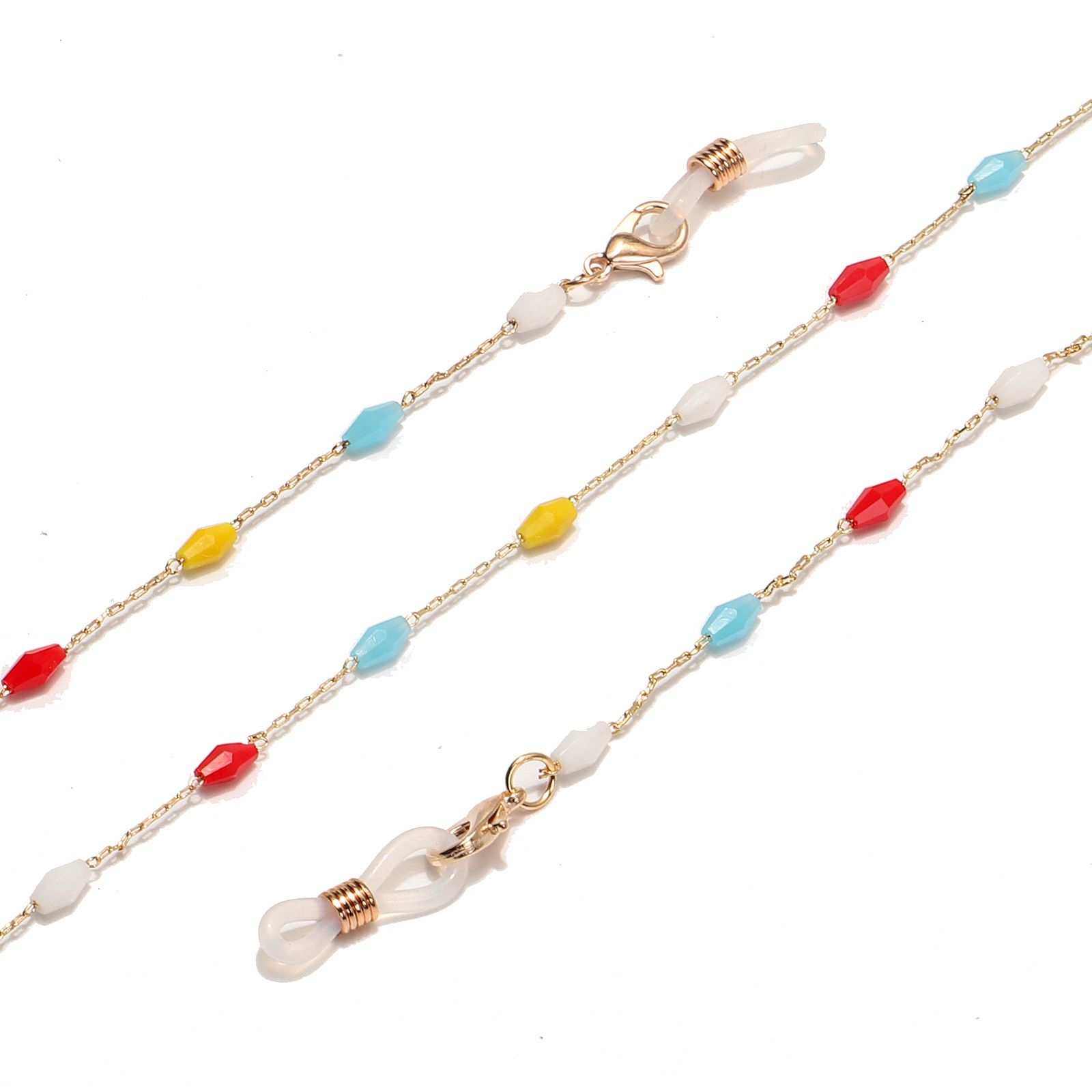 Металлическая нескользящая цепочка золотого цвета, с цветными бусинами, для очков и масок GL1517
