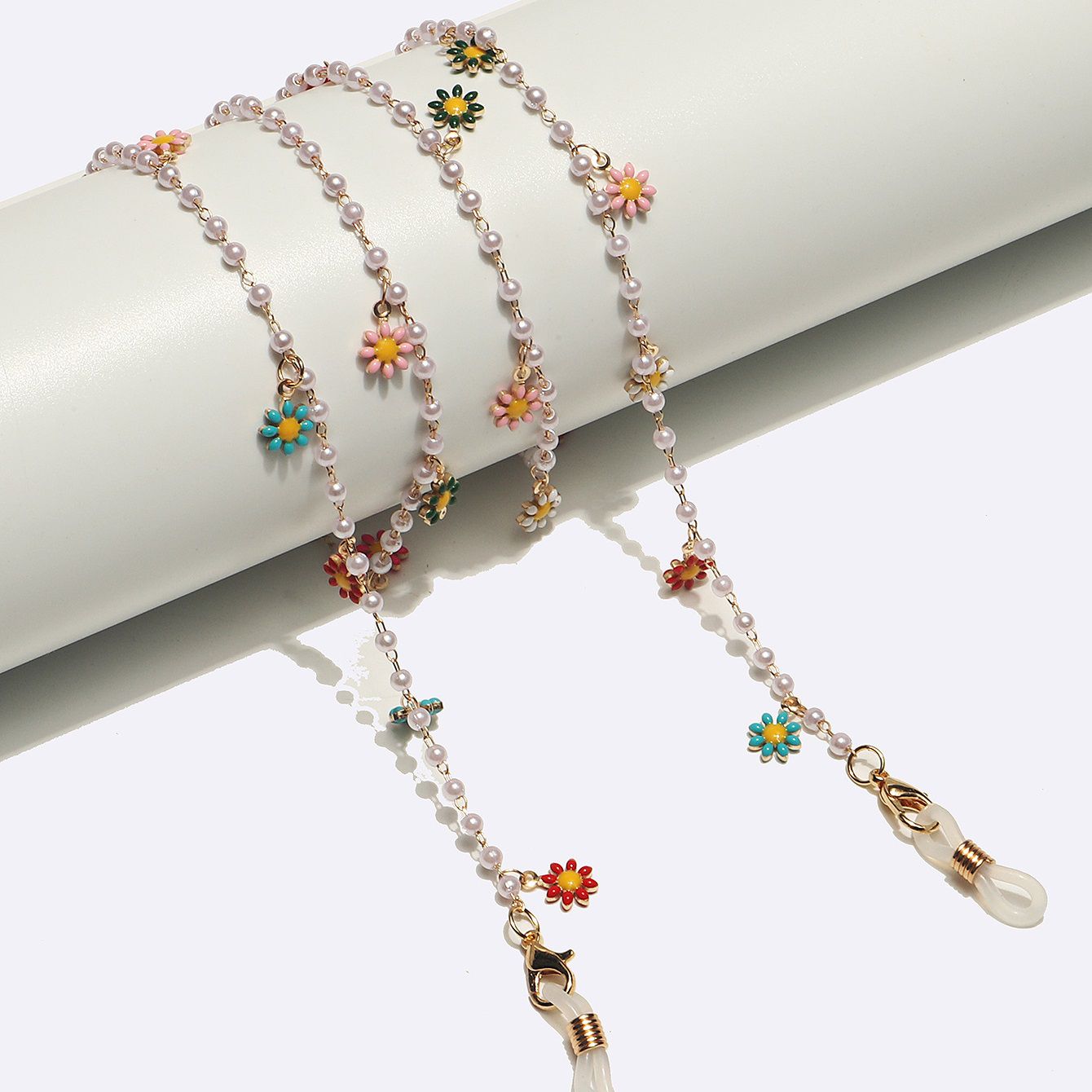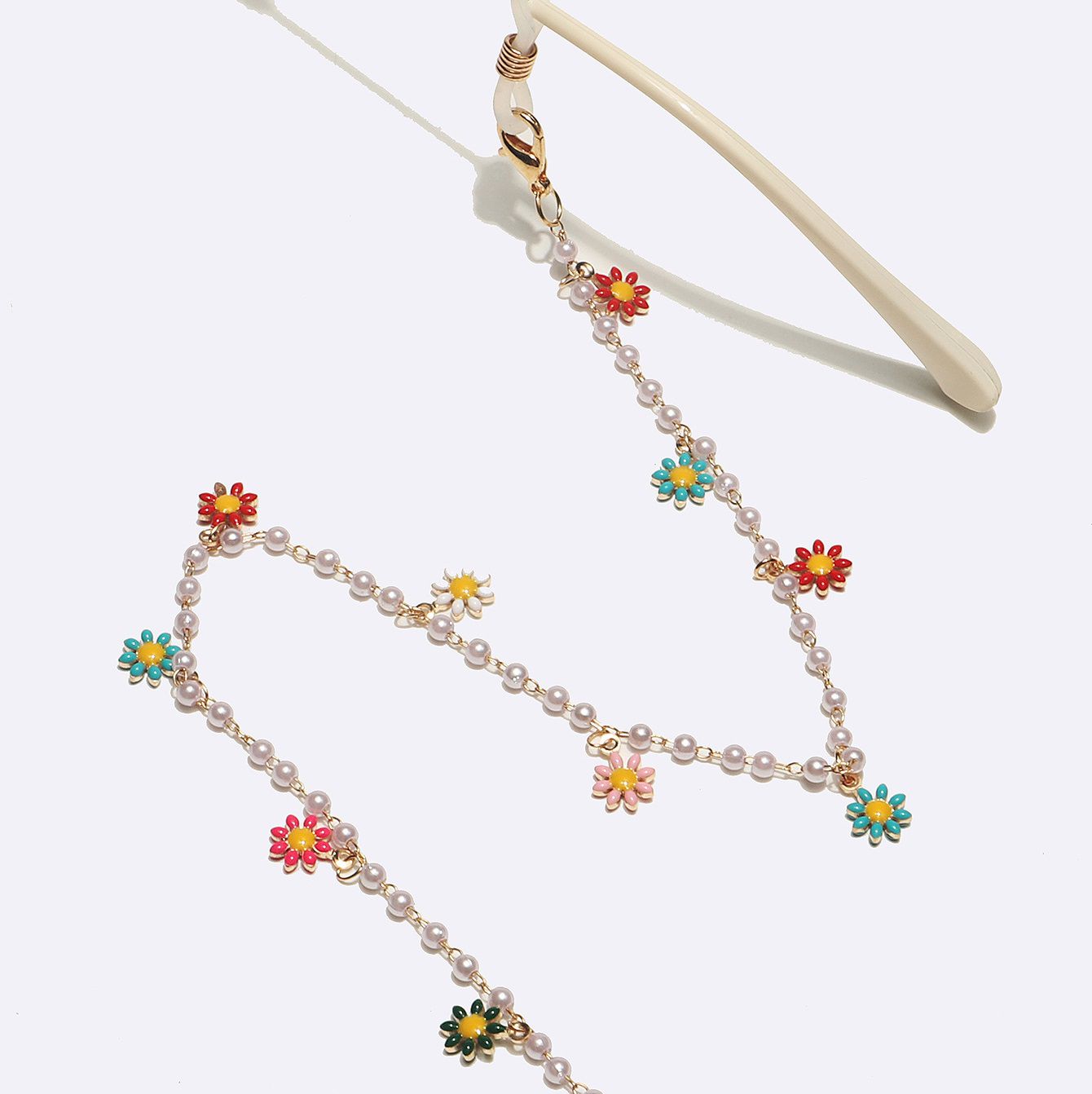 Металлическая нескользящая цепочка золотого цвета, с жемчугом и разноцветными ромашками, для очков и масок GL1704