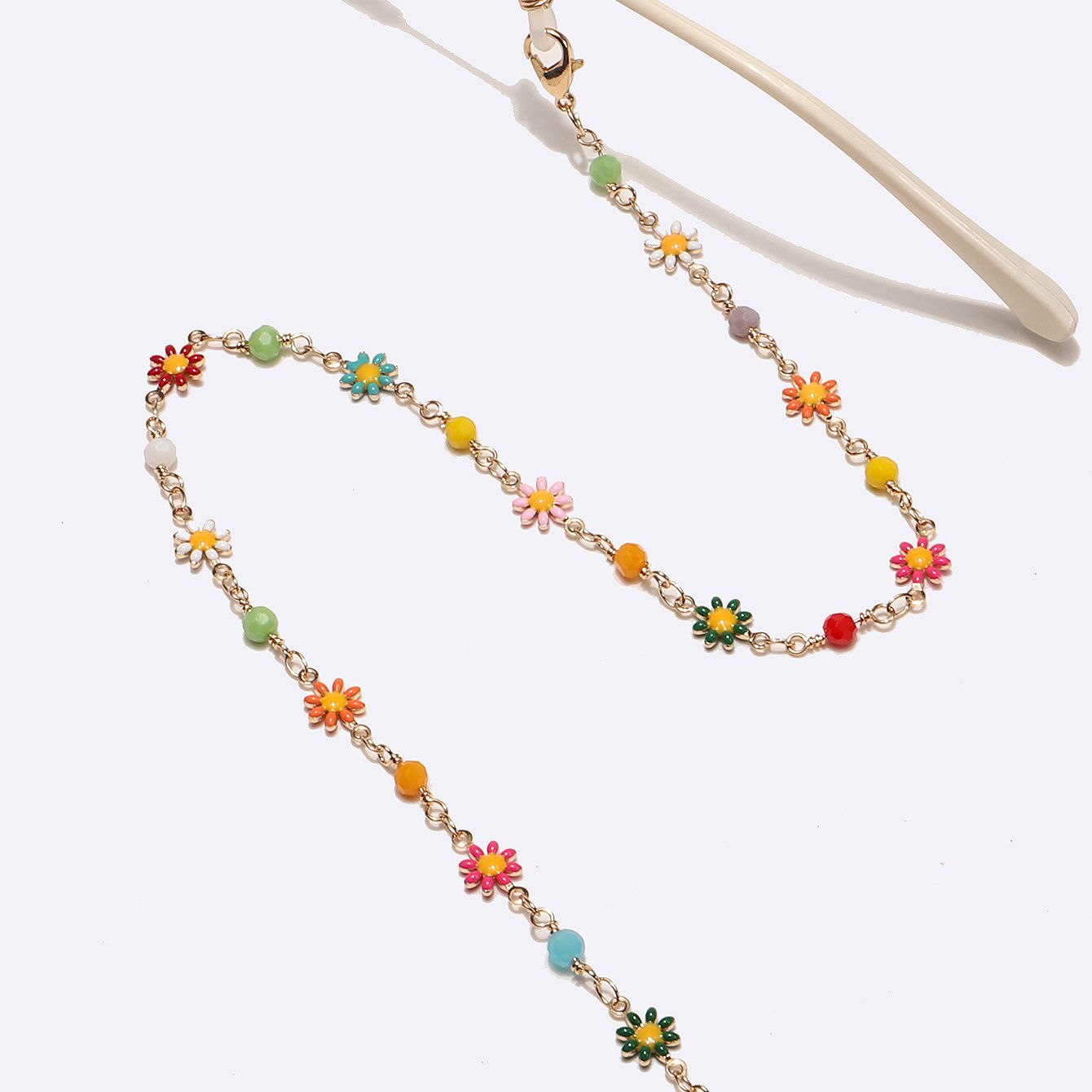 Металлическая нескользящая цепочка золотого цвета, с цветными ромашками и кристаллами, для очков и масок GL1715
