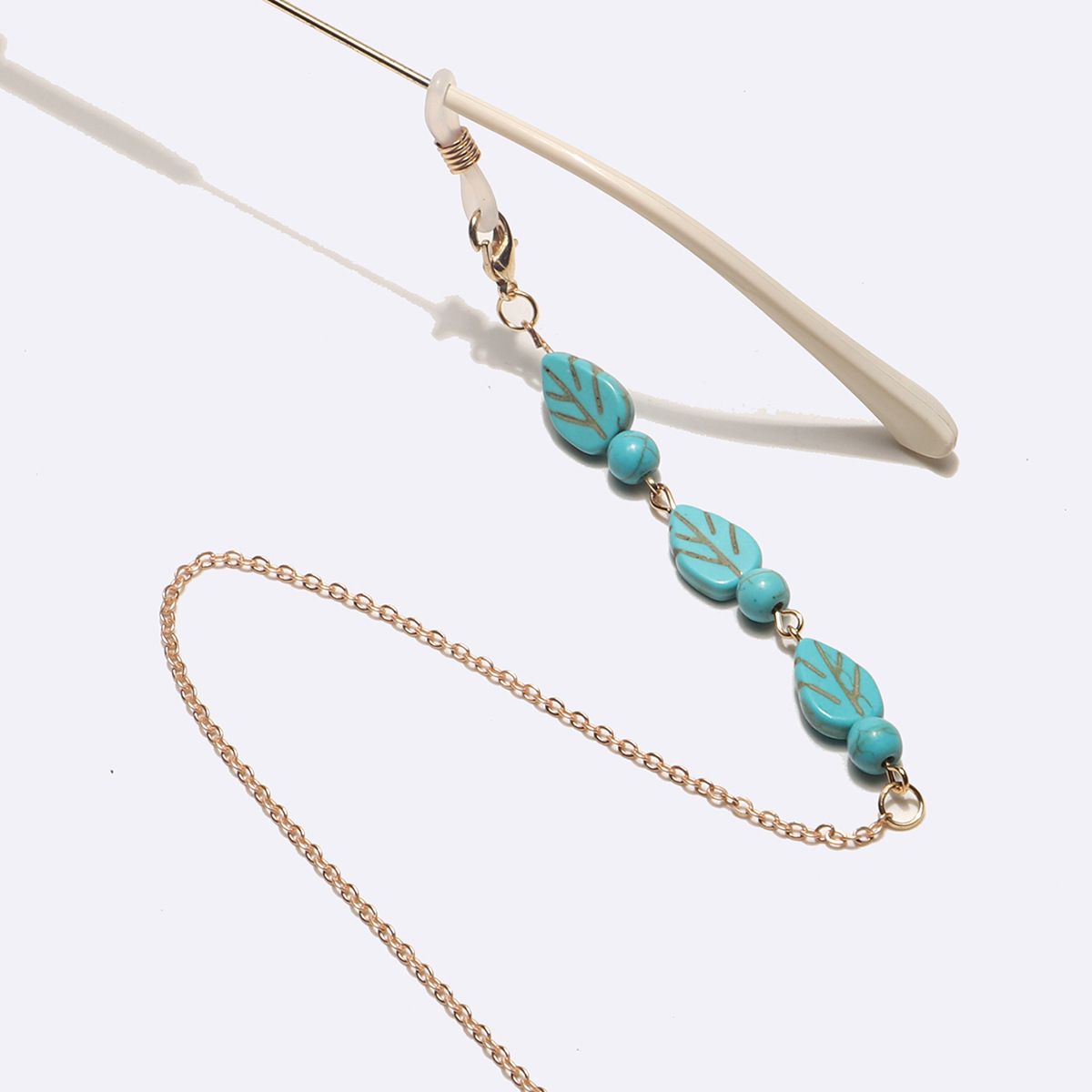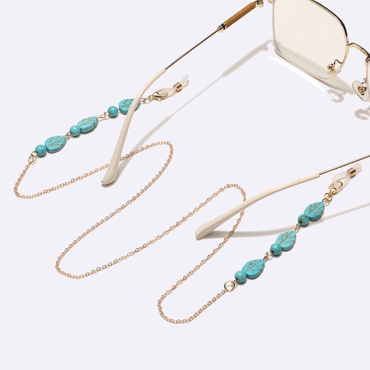 Металлическая нескользящая цепочка золотого цвета, с бирюзовыми листьями и бусинами, для очков и масок GL1742