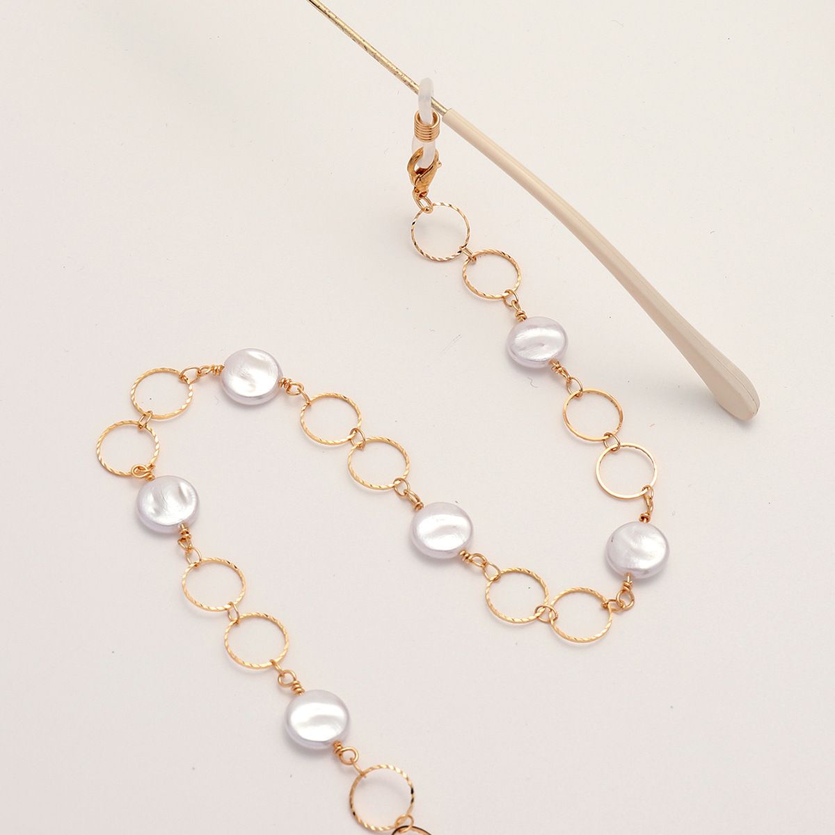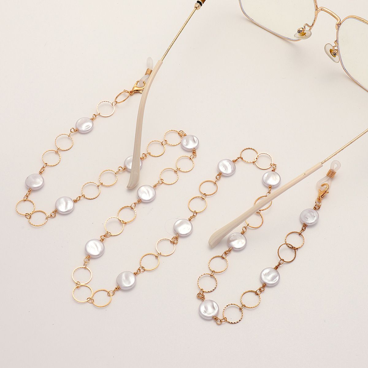 Металлическая нескользящая цепочка золотого цвета, с овальными жемчужинами, для очков и масок GL1865