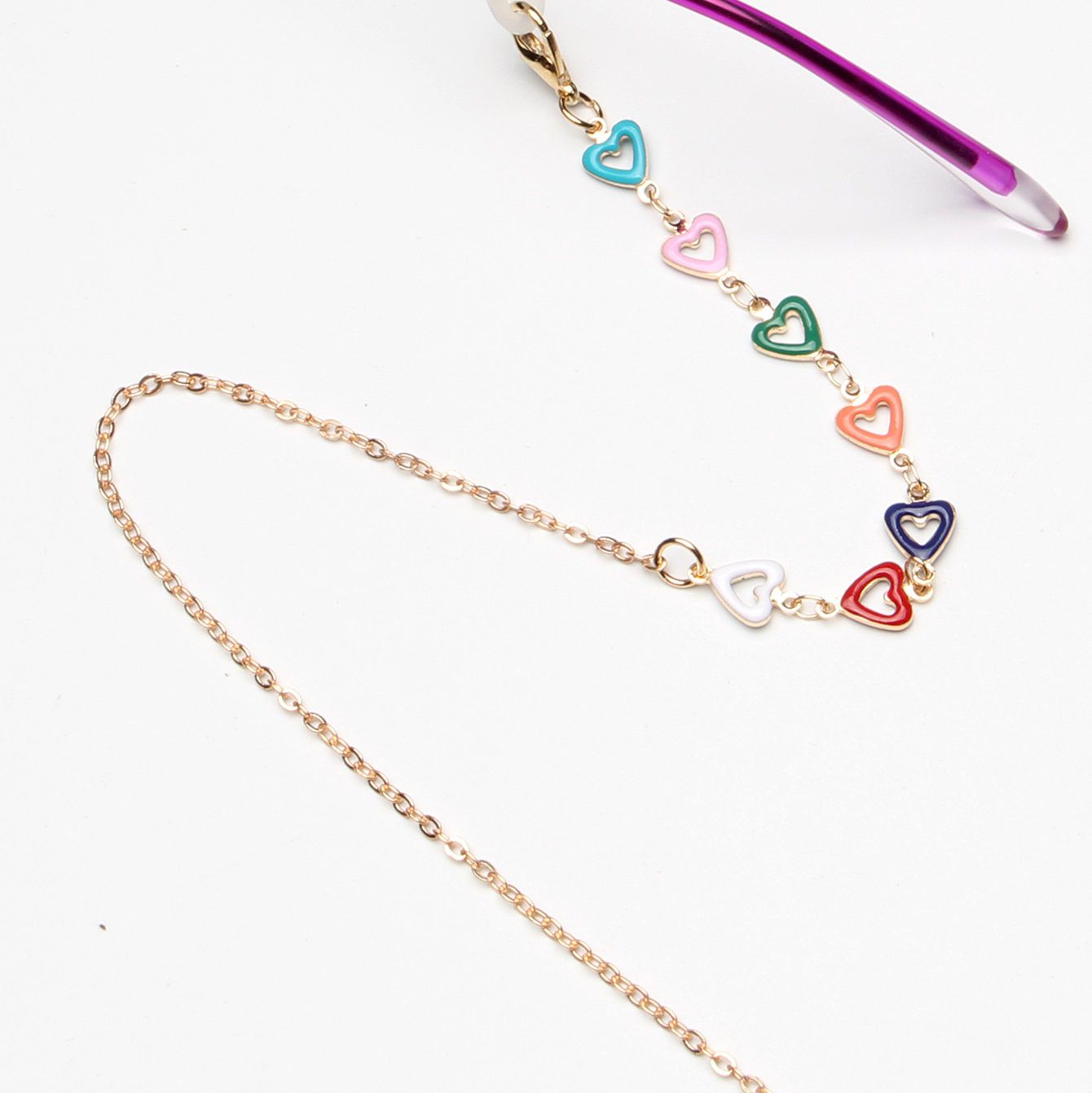 Металлическая нескользящая цепочка золотого цвета, с разноцветным сердцем, для очков и масок GL1897