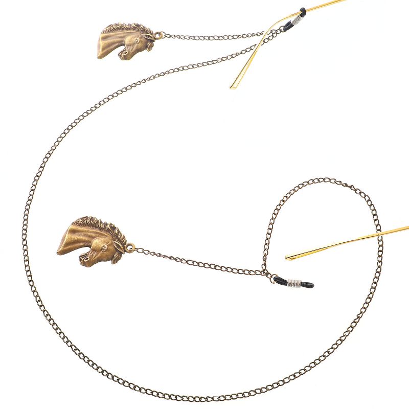 Металлическая нескользящая цепочка бронзового цвета, с подвеской в виде лошади, для очков и масок GL205