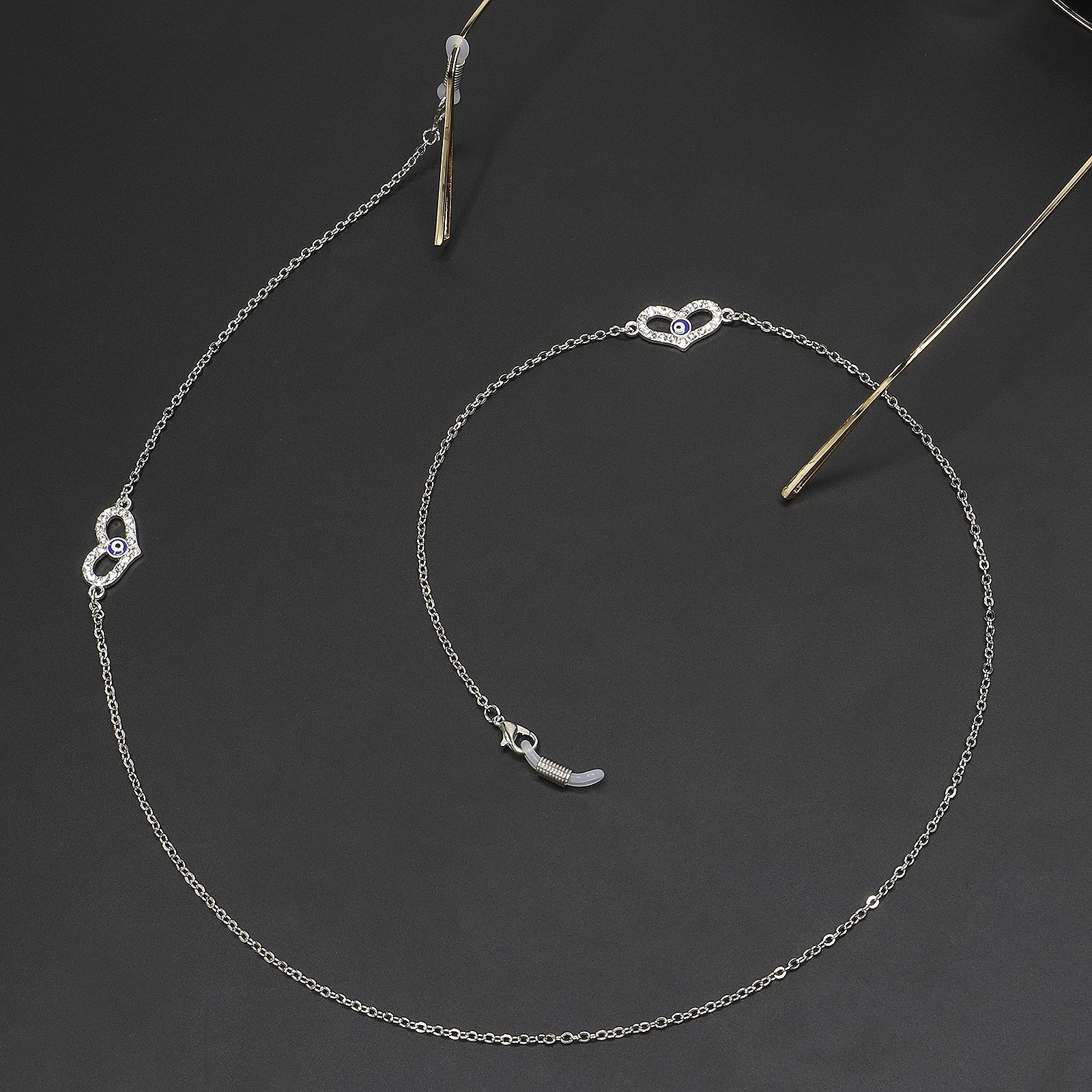 Металлическая нескользящая цепочка серебряного цвета, с сердцем со стразами, для очков и масок GL230