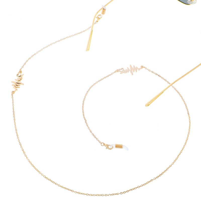 Металлическая нескользящая цепочка золотого цвета, с электрокардиограммой, для очков и масок GL256