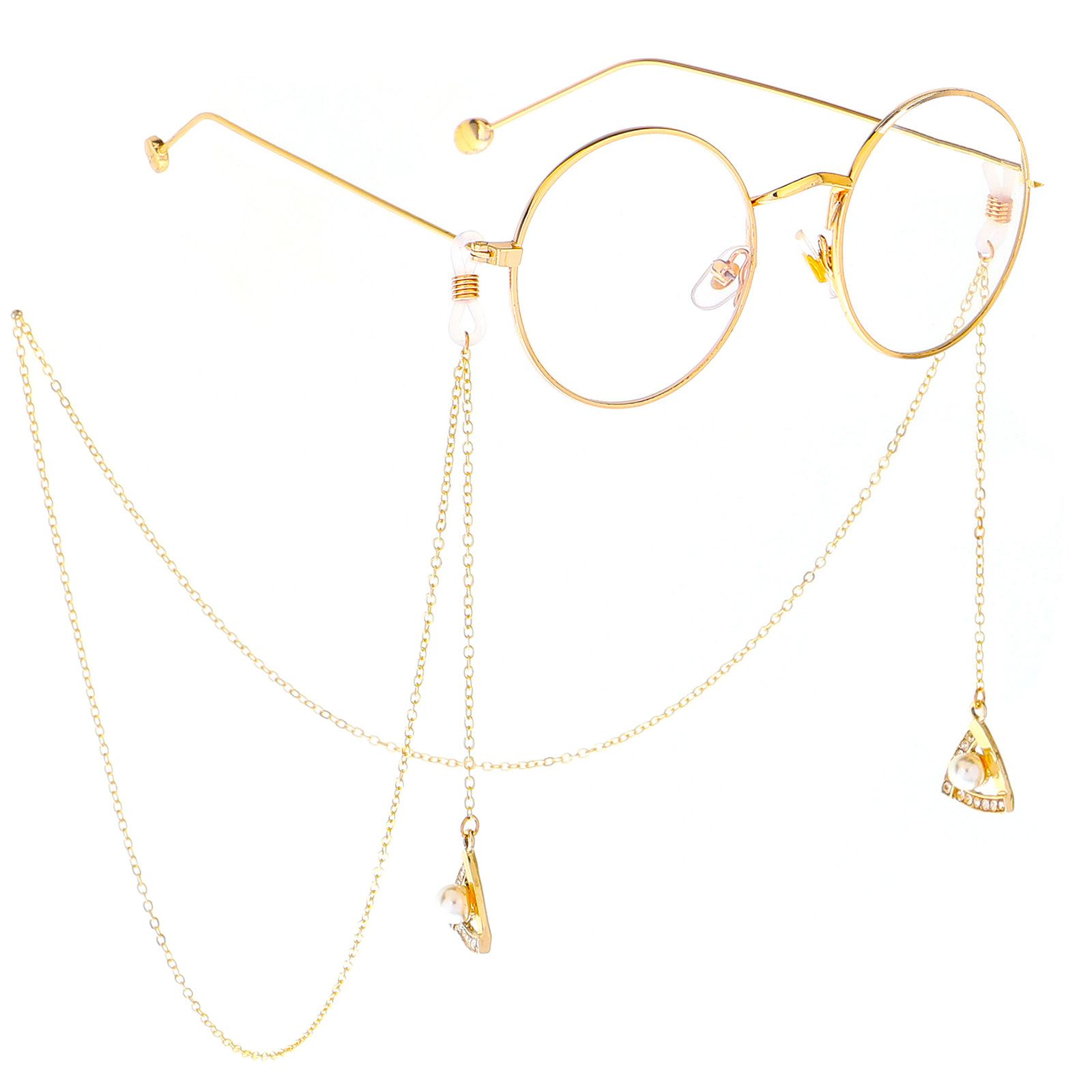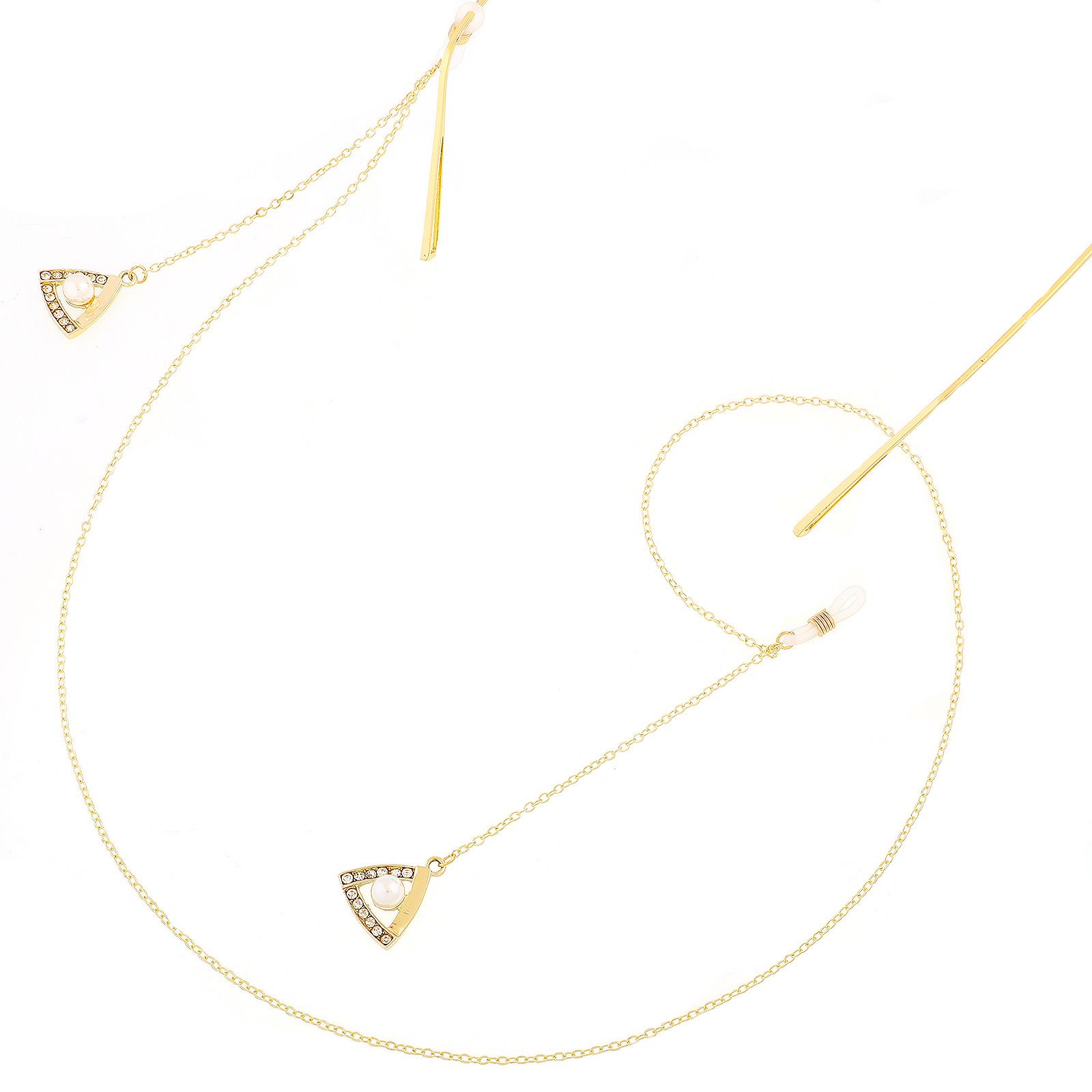 Металлическая нескользящая цепочка золотого цвета, с подвеской треугольник со стразами и жемчугом, для очков и масок GL279