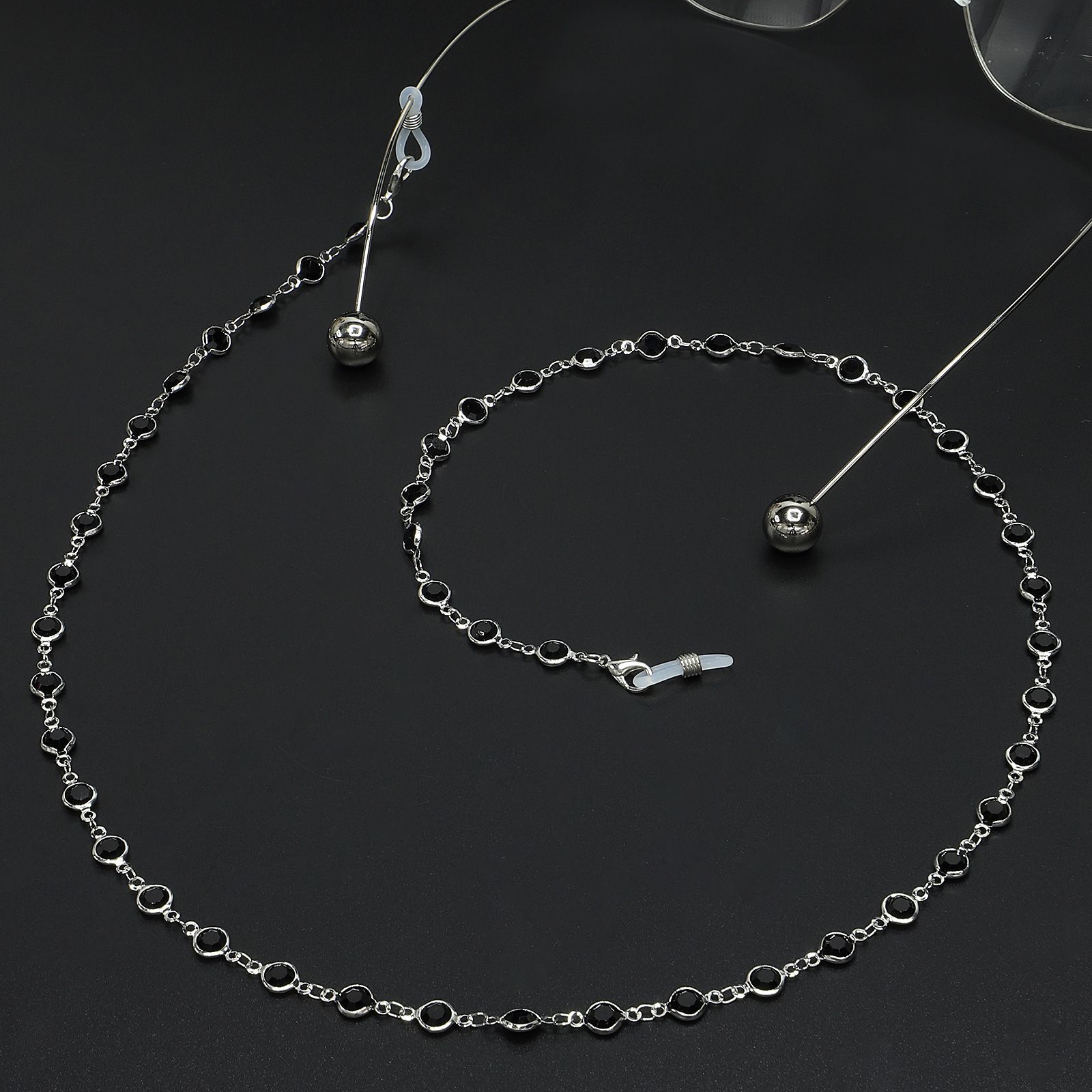 Металлическая нескользящая цепочка, с черными стекляными бусинми, для очков и масок GL329